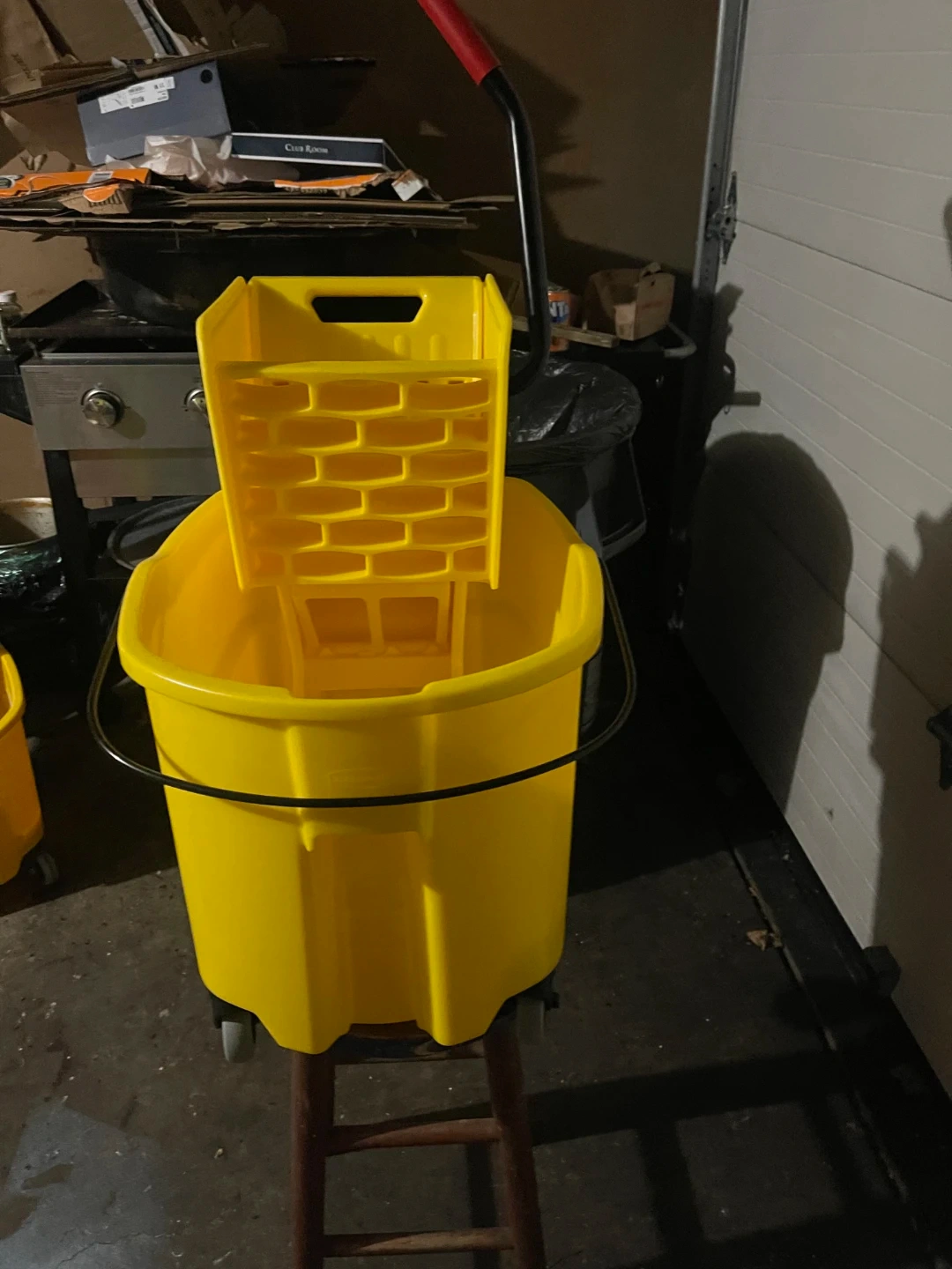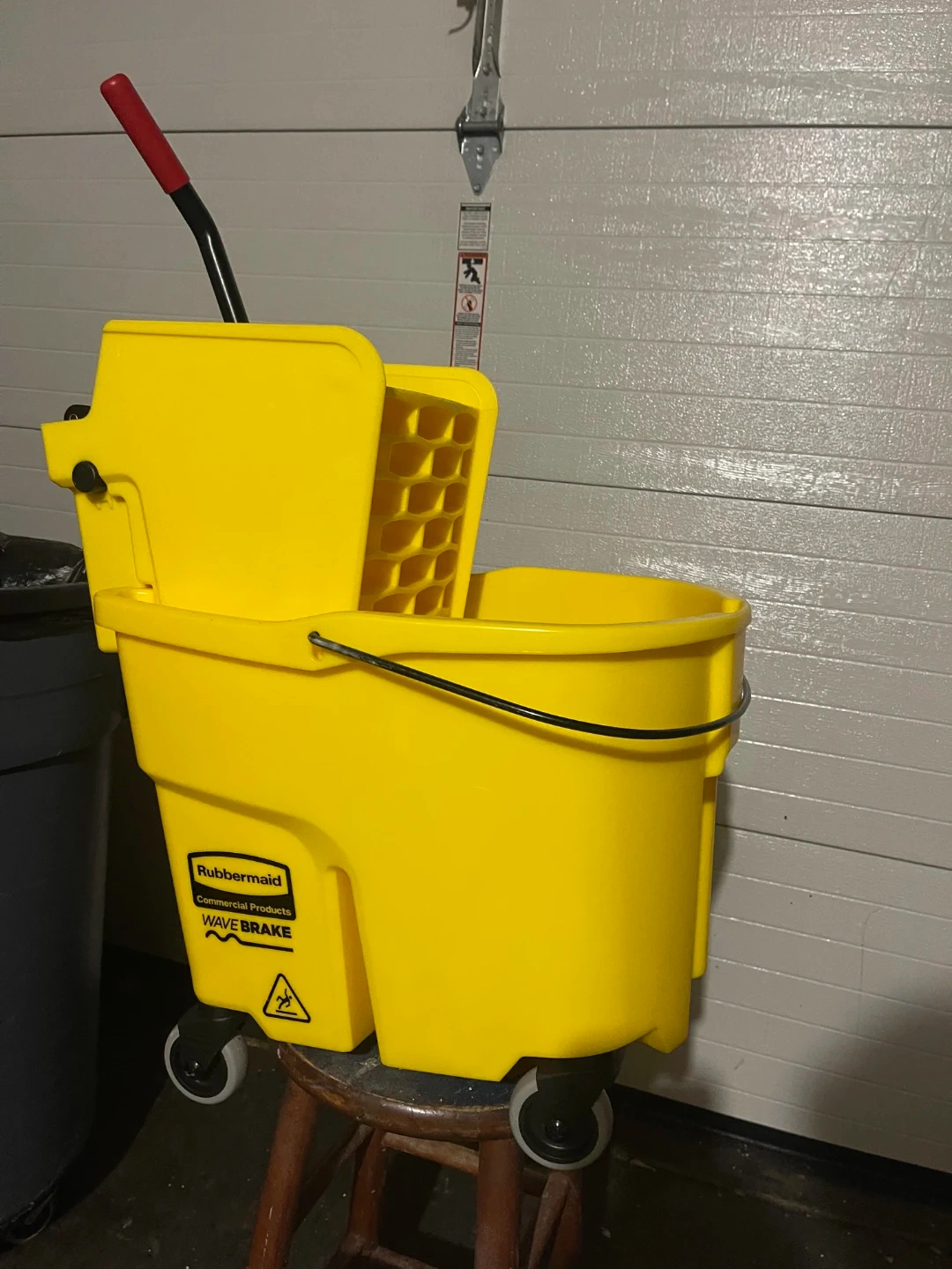 Selling a yellow Rubbermaid WaveBrake mop bucket. It's in good condition and ready to use! Perfect for cleaning up messes.