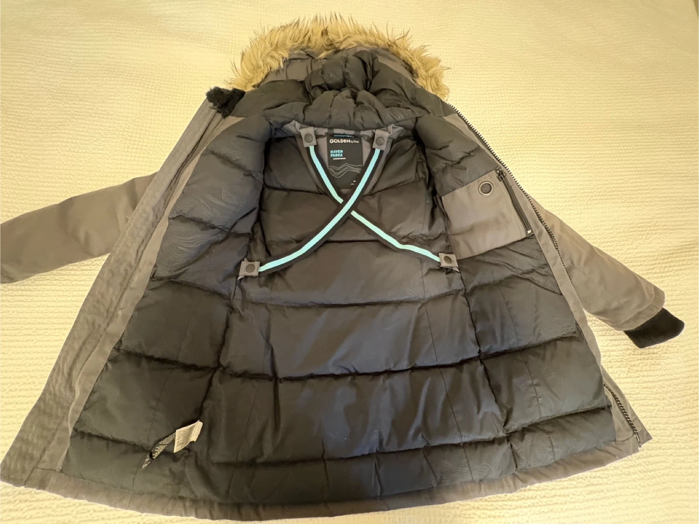 Very warm. In excellent condition with no rips or stains. Hardware all working. From pet free, smoke free, fragrance free home.