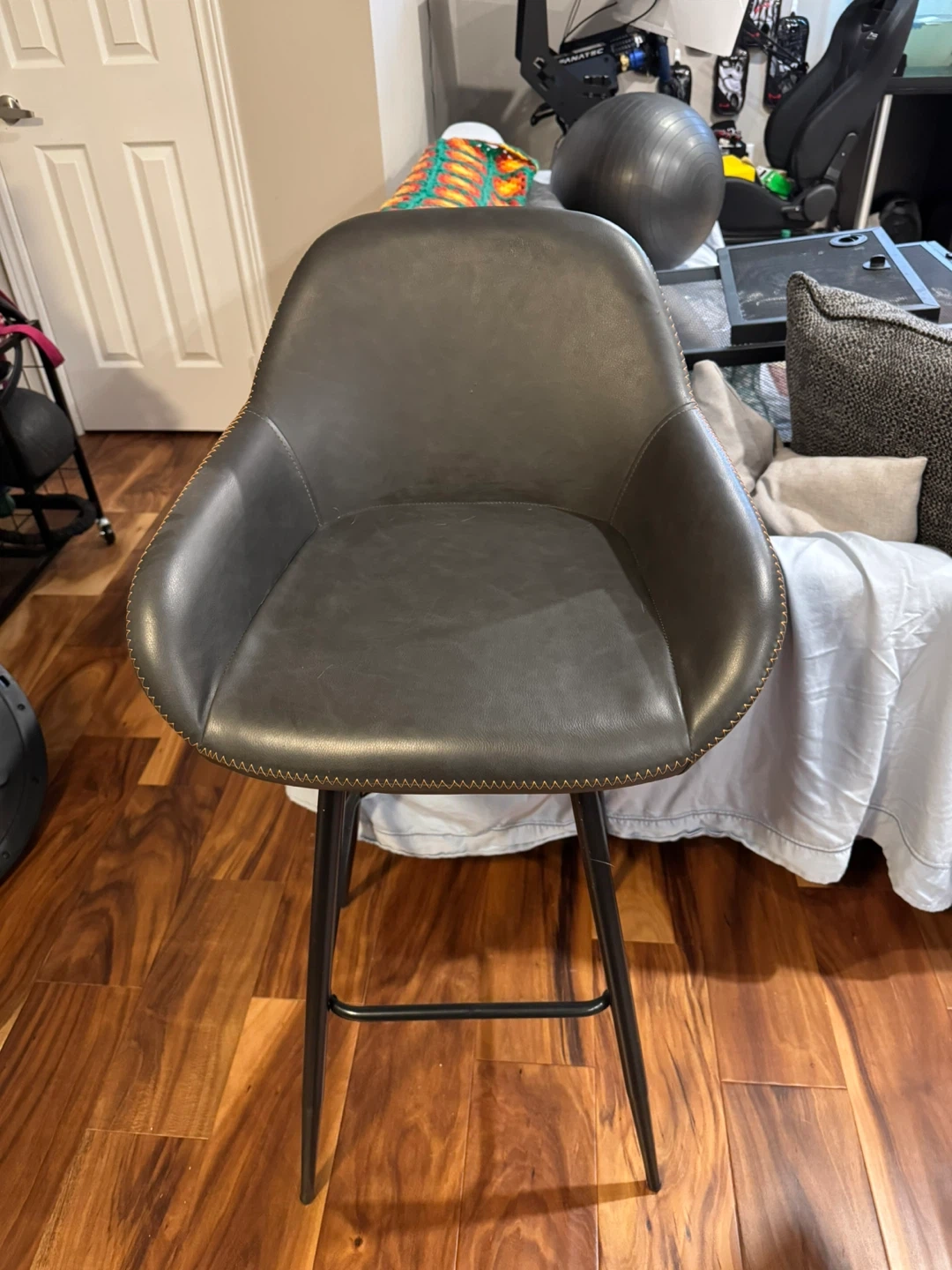Selling a set of two bar stools in great condition! They're a stylish grey colour and would look great in any kitchen or bar area. Seat height 28 inches total height 40 inches.