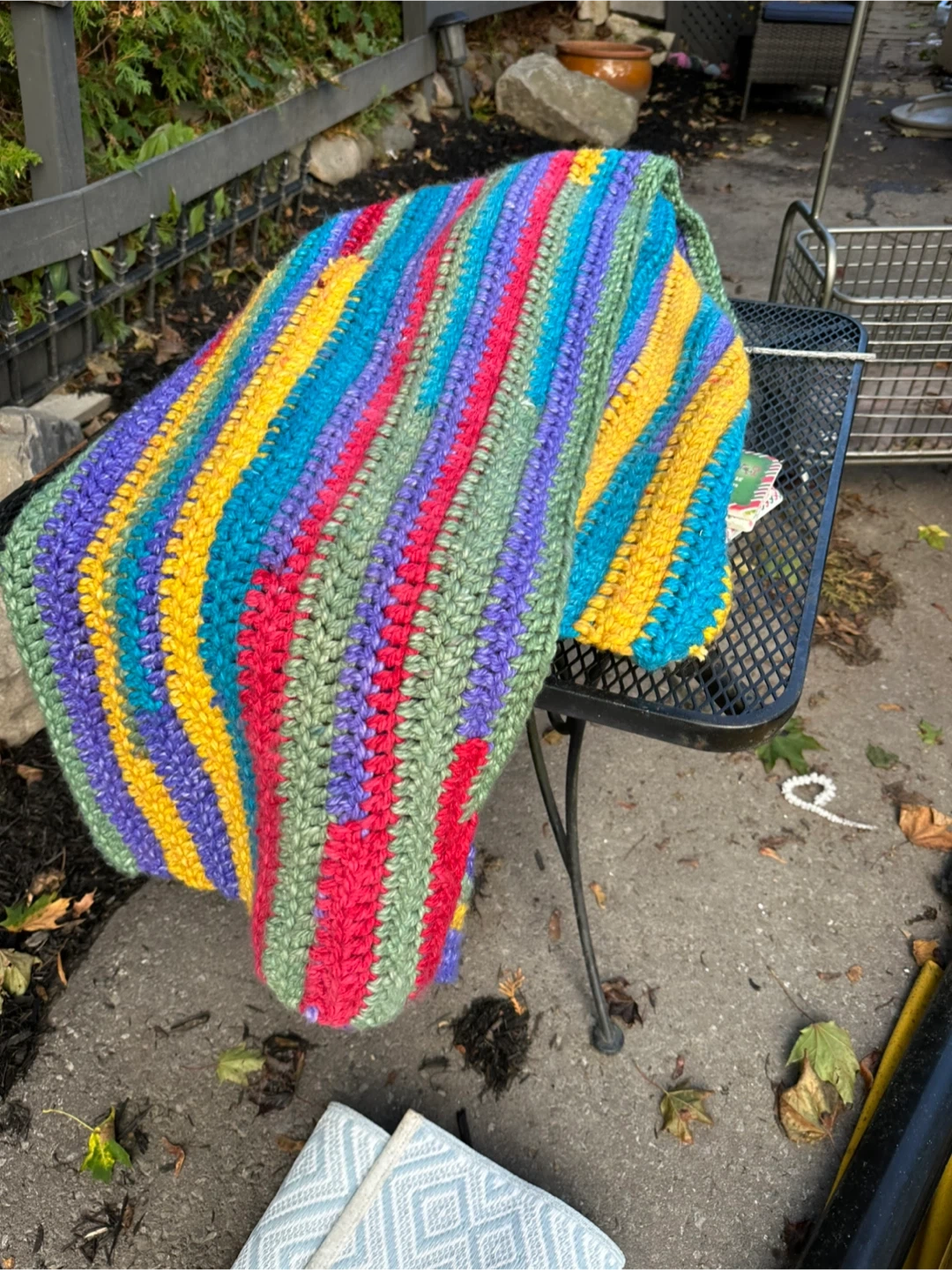 Selling a vibrant, handmade crochet blanket. It's a unique piece with lots of colours, perfect for adding a cozy touch to any room!