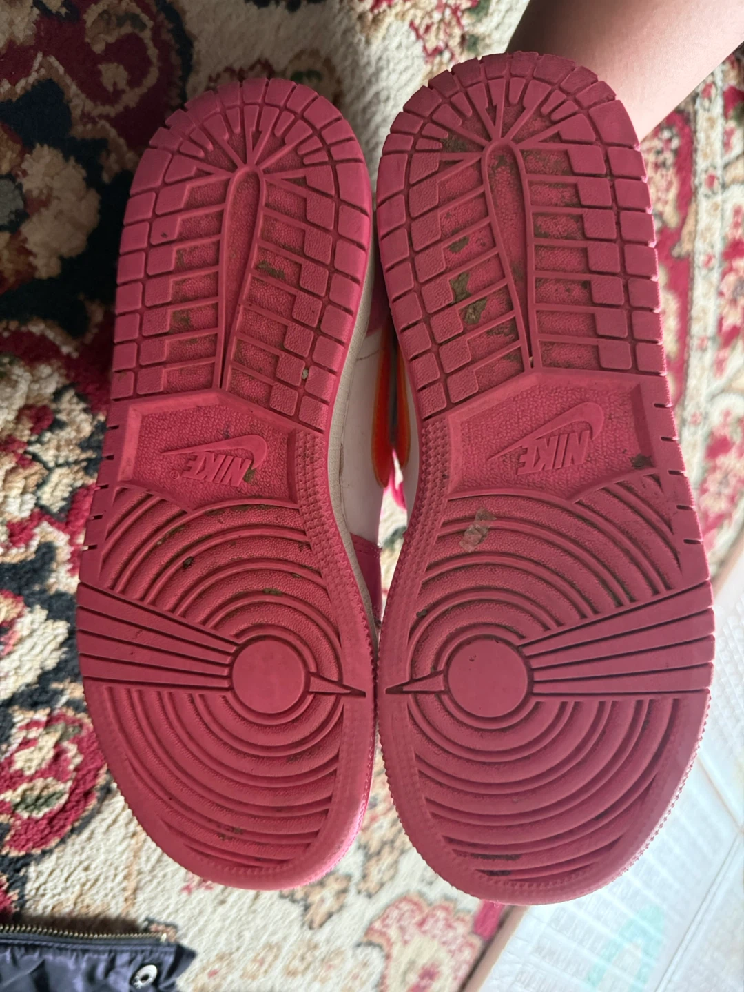Selling a pair of Nike Air Jordan 1 Mid high tops in pink and white. And Aldo Dirty pink shoes. They're in good condition and ready for a new home! Sizes in the picture.
