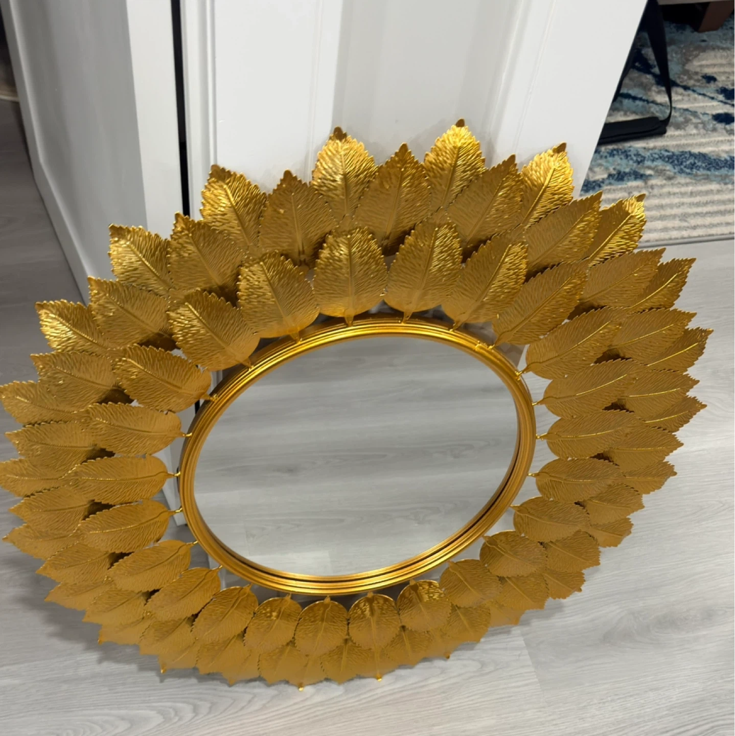 Add a touch of elegance to your home with this beautiful gold leaf decorative round mirror! It's in great condition and ready to brighten up any room size 32x32