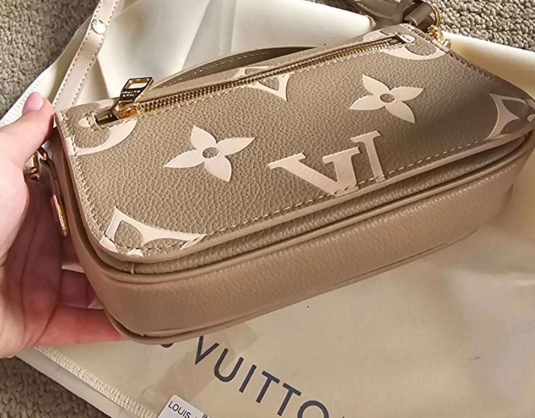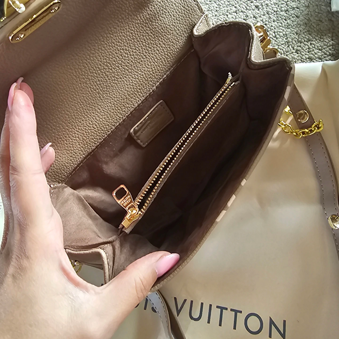 This is a Louis Vuitton Marais BB bag in the Monogram Empreinte leather. It's a beautiful, compact bag, perfect for everyday use or a night out. The bag features the iconic LV monogram pattern embossed on supple leather, with gold-tone hardware adding a touch of luxury. It comes with a detachable strap, offering versatile carrying options. The bag is in great condition and comes with its original dust bag.