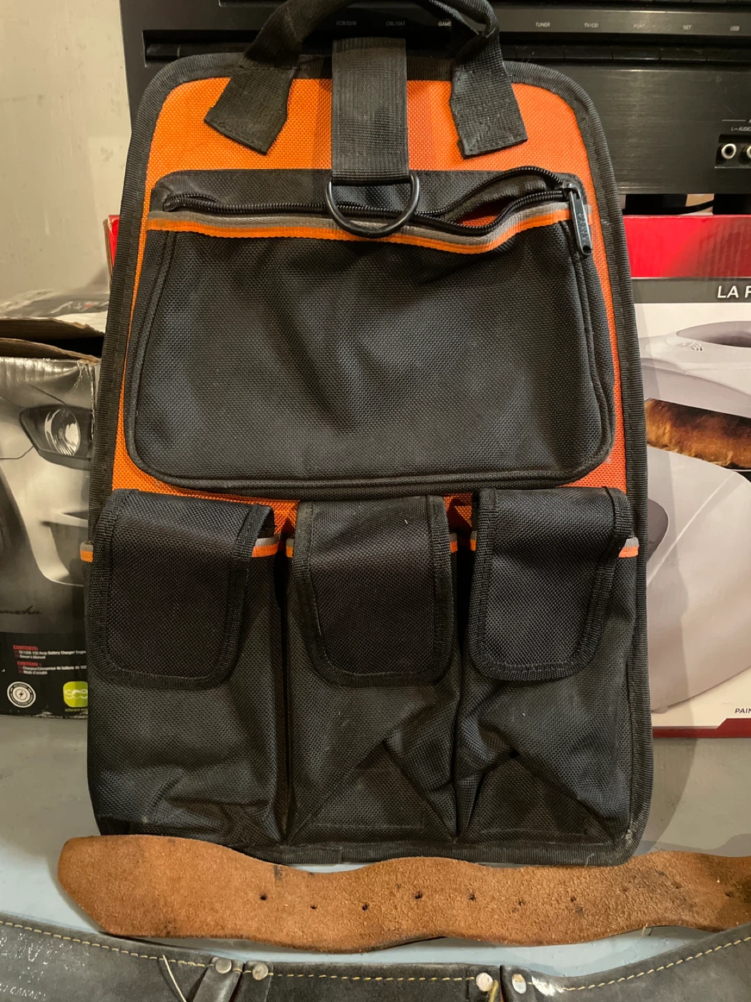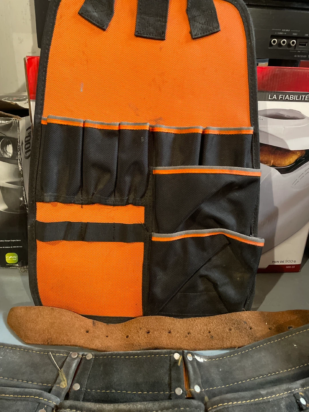Selling a tool belt and organizer. It's in used condition, but still has lots of life left! Great for keeping your tools handy while you work. Also a work shirt with reflective sleeves. Not sure of the size but it’s about an XL