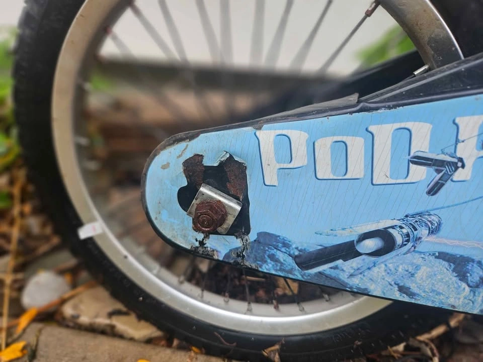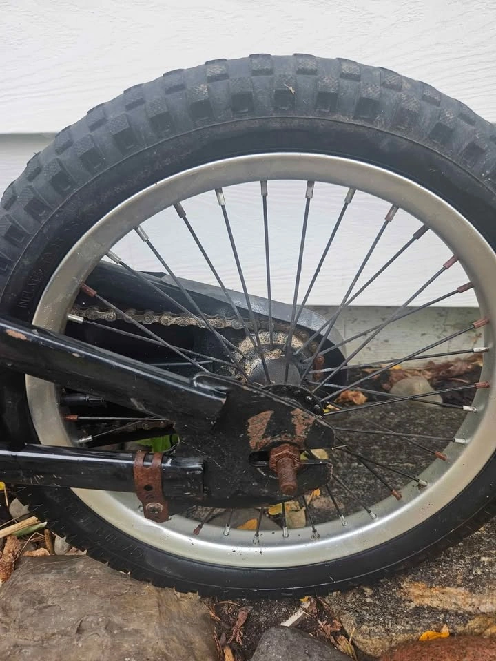 Tires hold air, chain works and seat has been repaired with tape. Has some damaged spots as seen in photos
