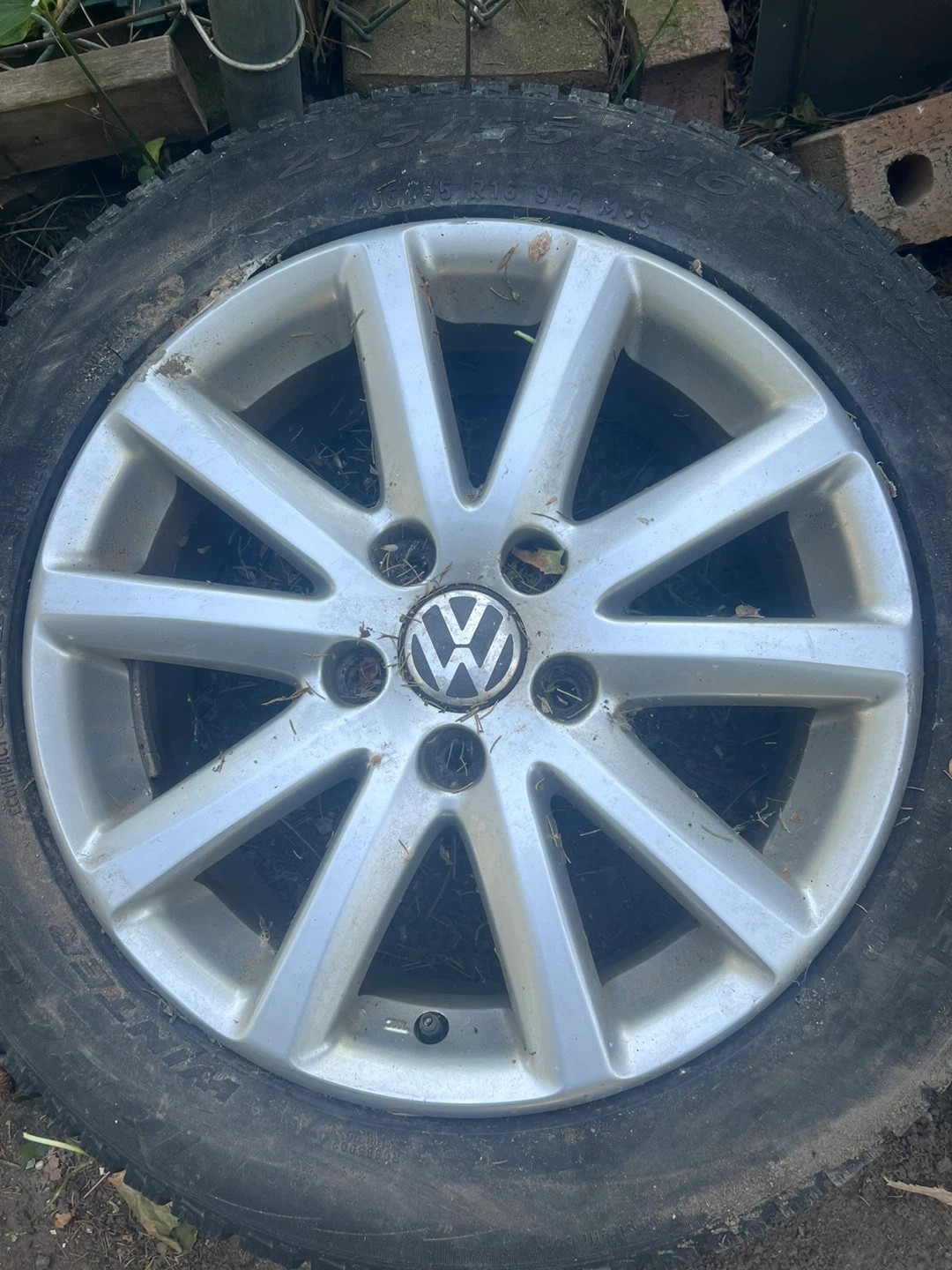 Selling a set of 3 Volkswagen wheels with tires.205/5516
