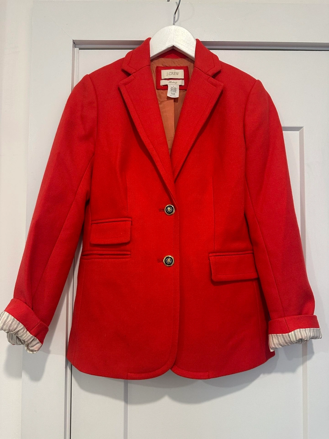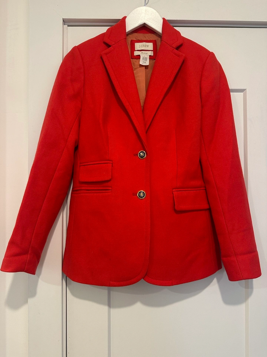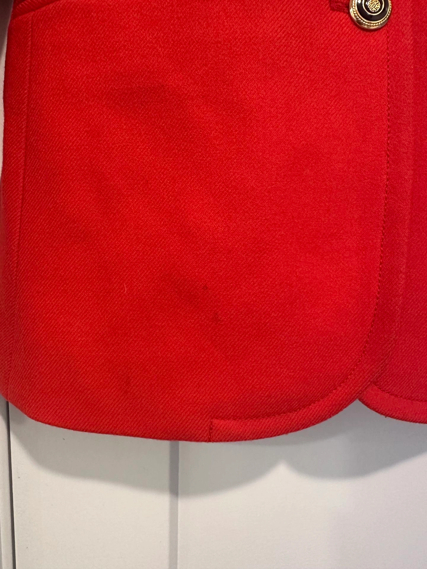Long & lean silhouette with a flattering nipped-in waist. Notch collar. Functional buttons at cuffs. Welt & interior pockets. Back vent. Lined. Retail: $249