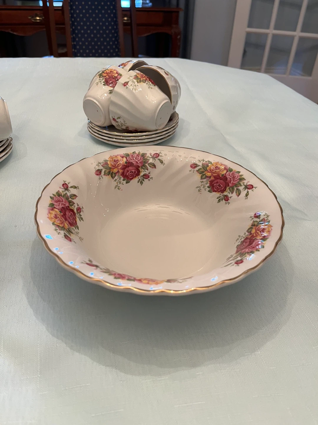 Selling a beautiful Myott Rose Garden Ironstone Ware dinnerware set, made in England! This set features a lovely floral design, perfect for adding a touch of elegance to your dining table/ place setting for 8- smoke free home