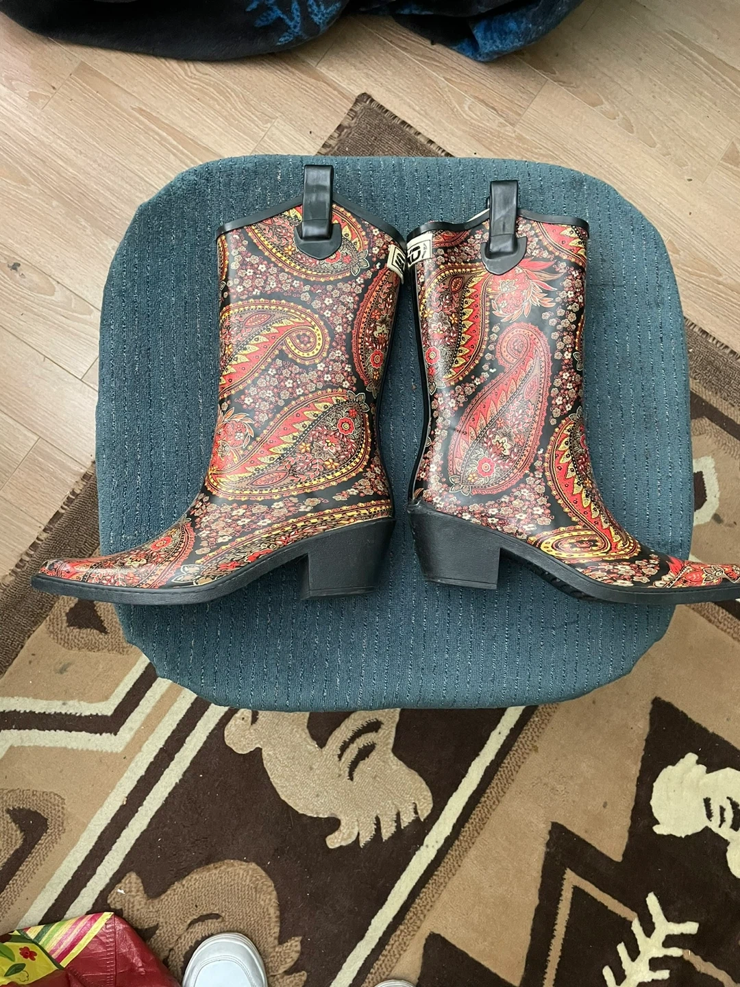These Sloggers waterproof rain boots are in great shape and ready for some puddle jumping! They feature a fun paisley pattern and are a women's size 7. Perfect for keeping your feet dry and stylish on rainy days!