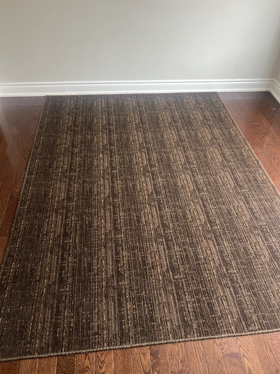Selling a brown area rug in good condition. It's perfect for adding a touch of warmth and texture to any room in your home. It could be used in your living room, bedroom, or even a home office!