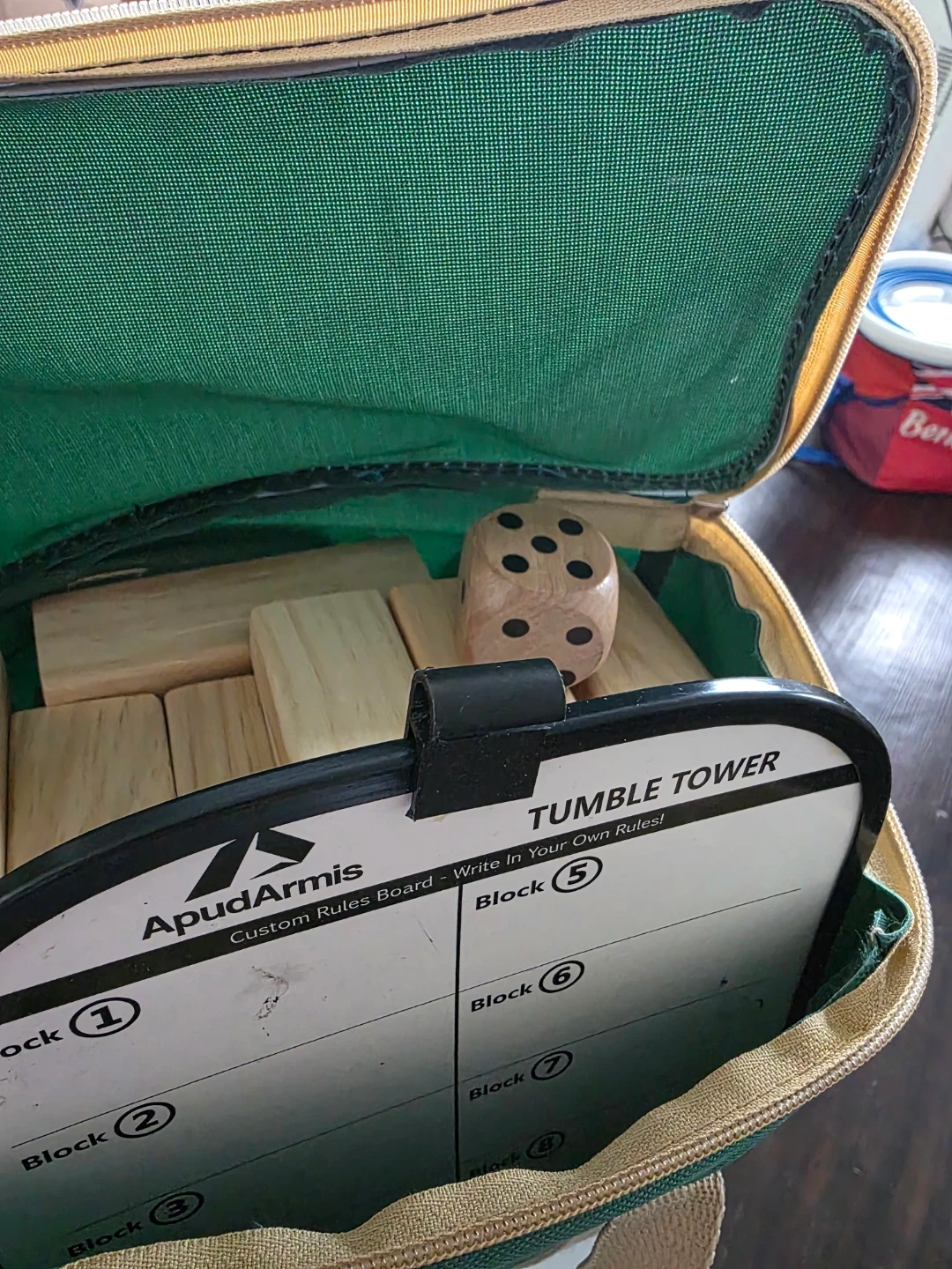 Selling a new Tumble Tower game by ApudAmis! It comes in a convenient carrying case, making it easy to bring along for game nights or outdoor fun. Includes the wooden blocks and a die for added gameplay variations. Original Price- $45+tax Amazon- https://a.co/d/fRwlqNc
