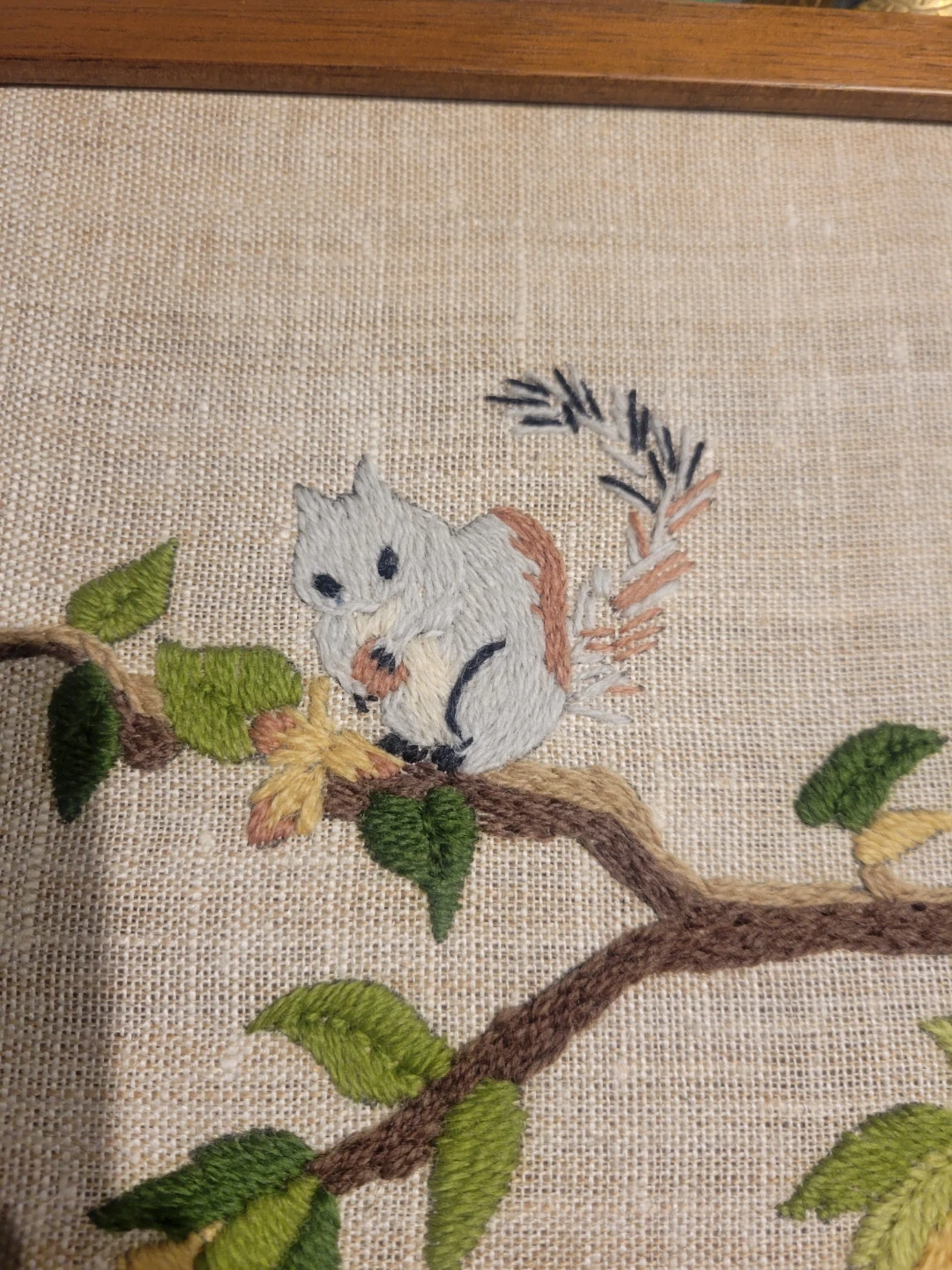 Crewel Embroidered Woodland Picture.Baby. nursery.art