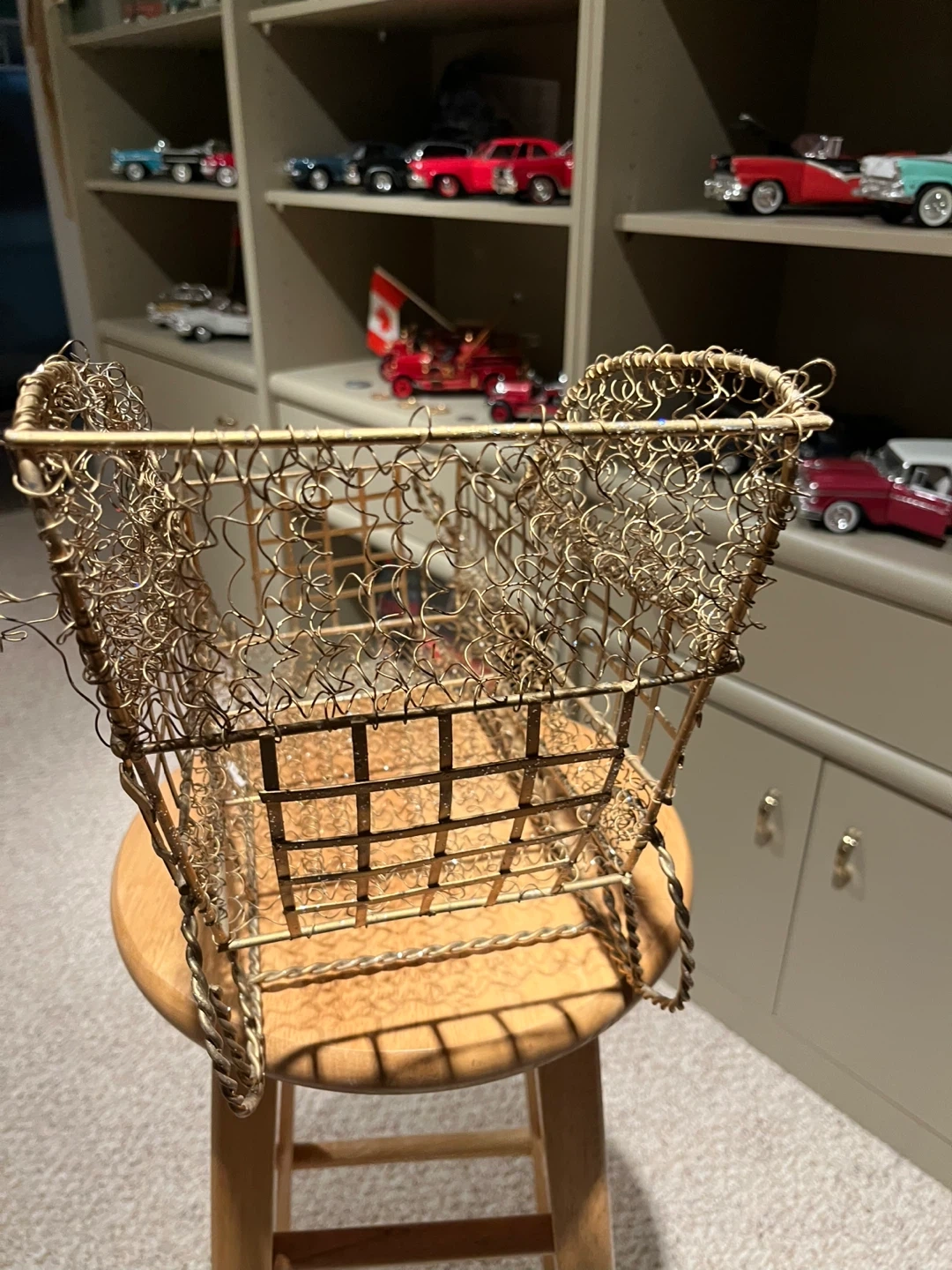 65Selling a vintage gold wire sleigh basket, It's a unique piece that would add a touch of retro charm to any space- perfecting for adding your Christmas decor- smoke free home