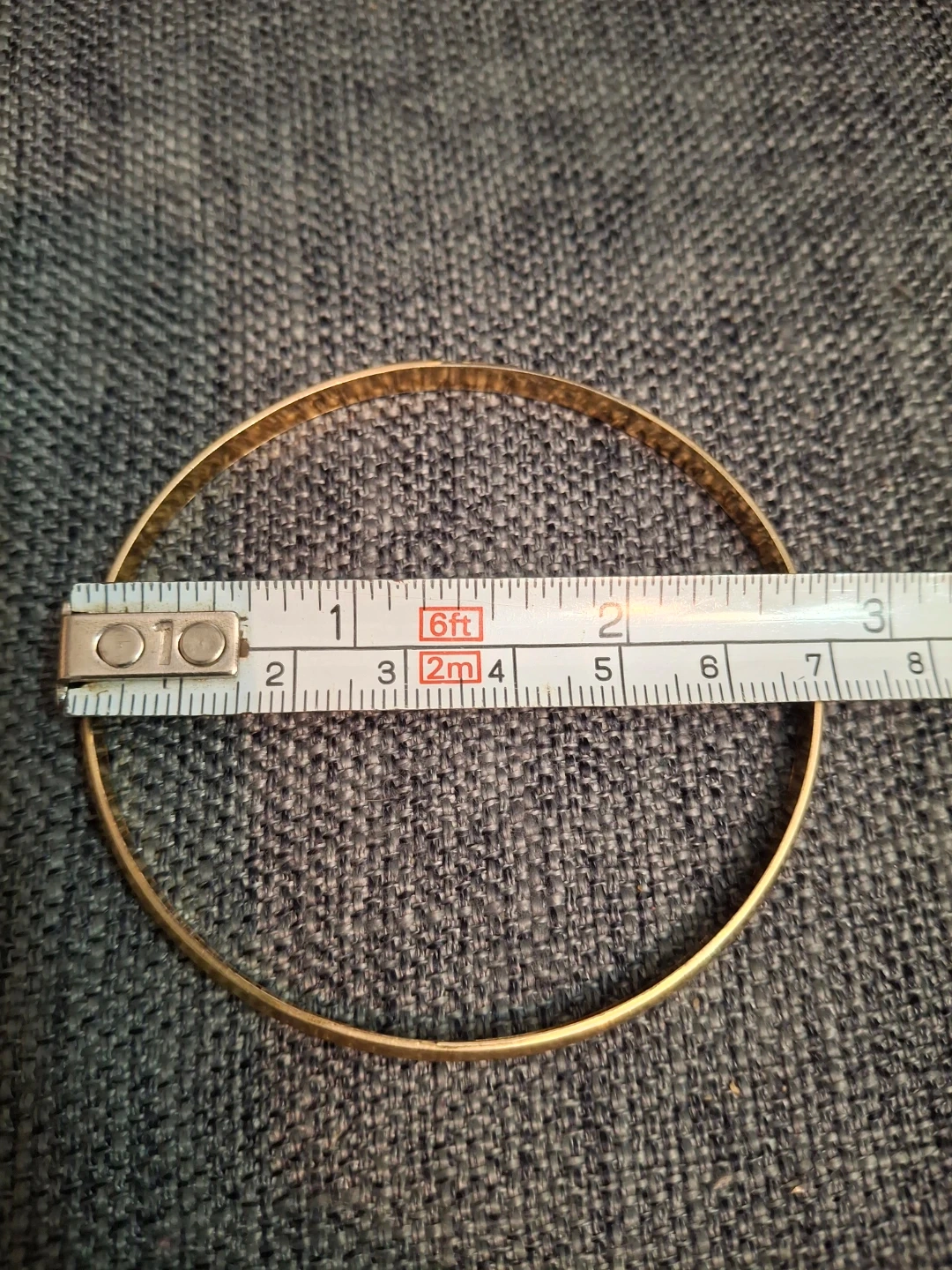 15Selling a simple gold plated bangle bracelet. It's in great shape and measures about 2.5 inches in diameter.