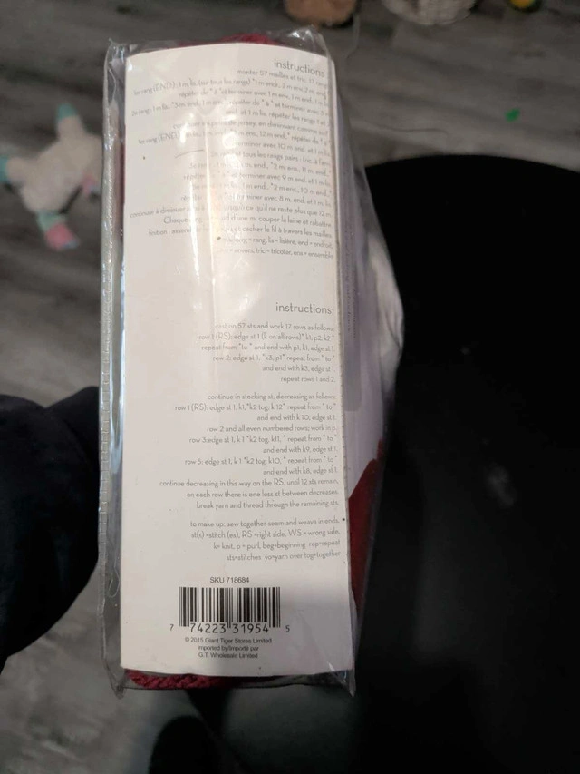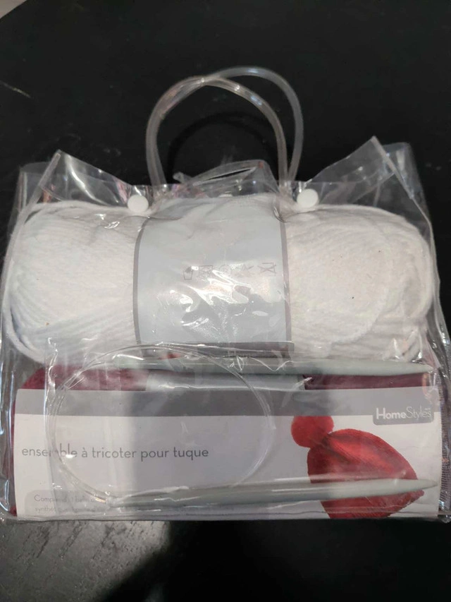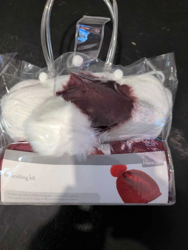 Get ready to knit your own stylish hat with this HomeStyles hat knitting kit, which includes one 120 g ball of knitting yarn, one faux fur pompom, one pair of circular knitting needles, and instructions. Brand new, never opened. * Includes yarn, pompom, needles and instructions * Makes one hat * Burgundy and White Colour Scheme This kit is so complete, it practically begs you to create a warm, fuzzy masterpiece!