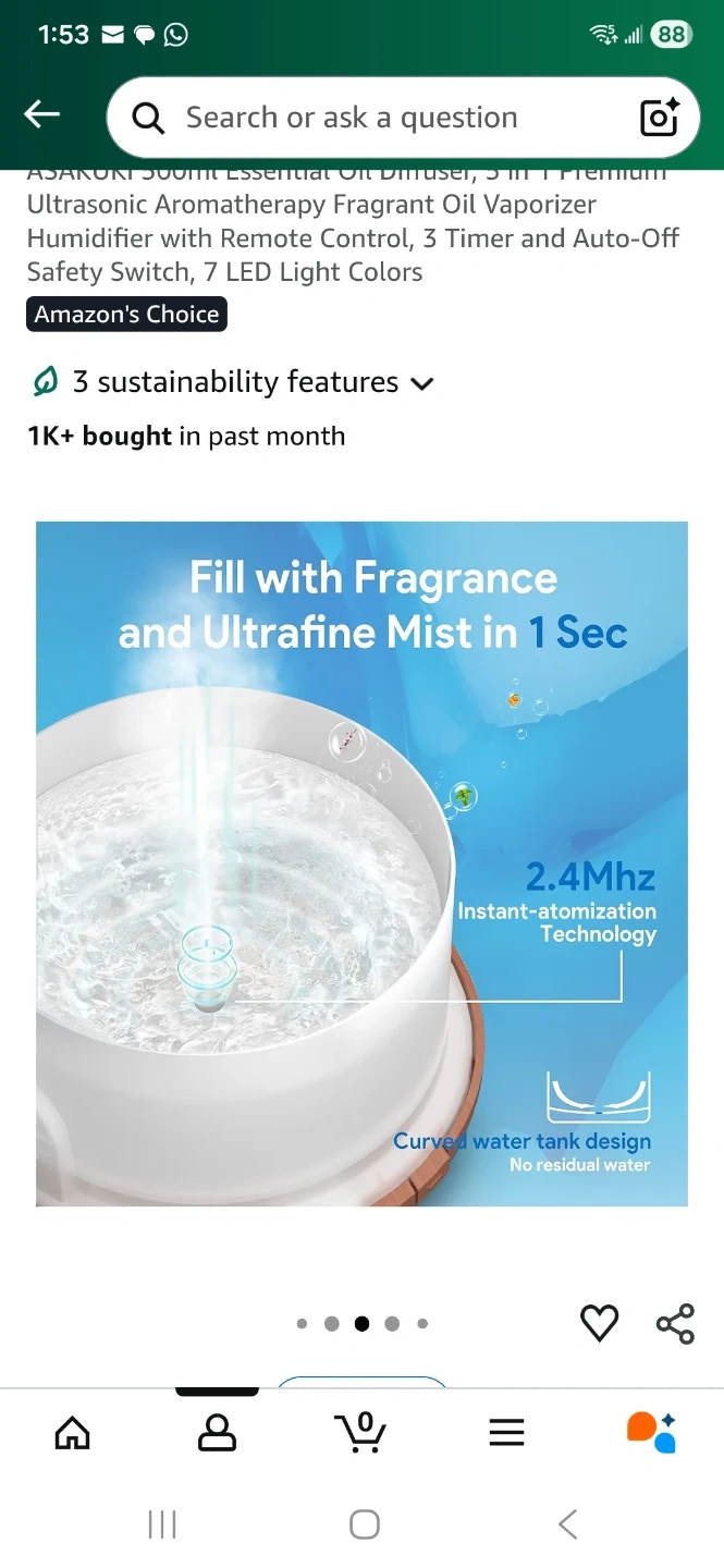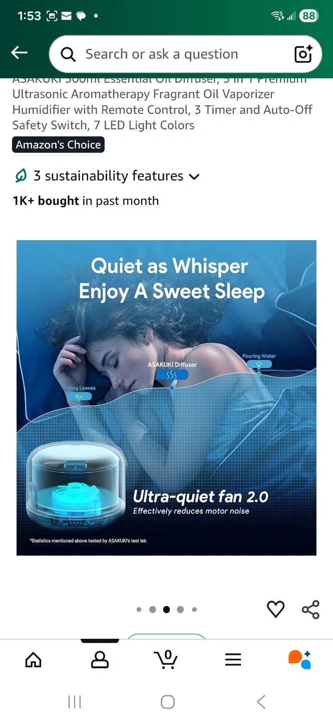 Selling an ASAKUKI 500ml Essential Oil Diffuser. It's a 5-in-1 premium ultrasonic aromatherapy fragrant oil vaporizer humidifier. It comes with a remote control, 3 timer settings, and an auto-off safety switch, plus 7 LED light colours.