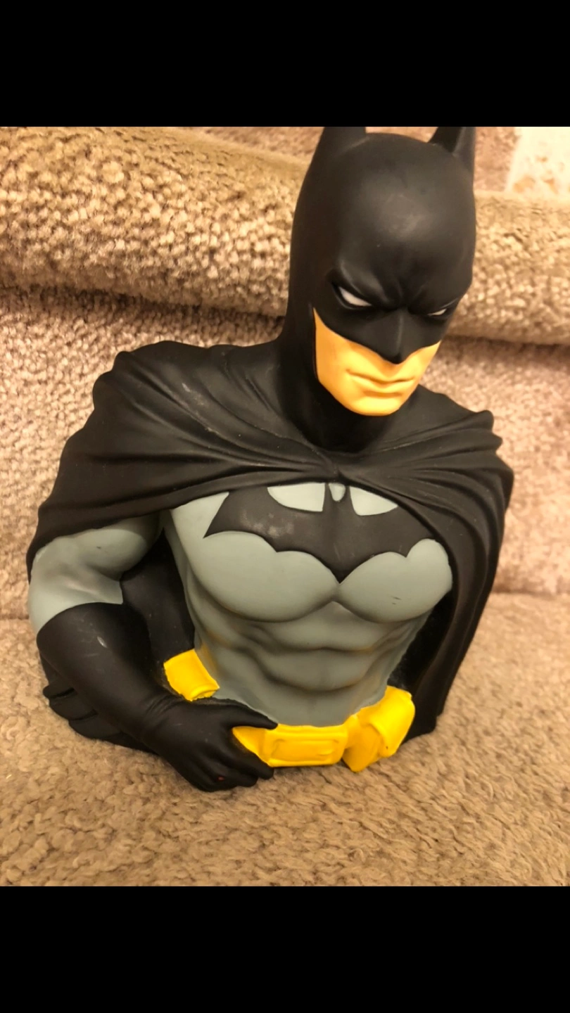 Here's a cool Batman bust that doubles as a bank! It's from DC Comics and features the classic Batman design. Perfect for any Batman fan or collector