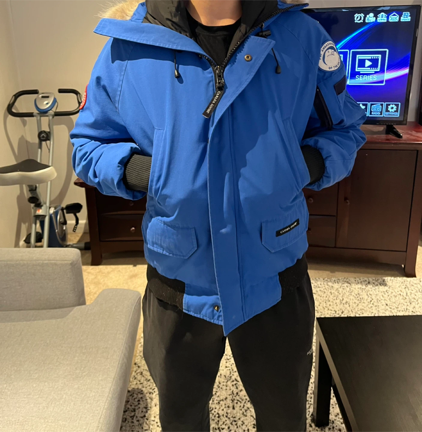 Selling a Canada Goose bomber jacket in size Small but it fits my son that he is large size .It's in very good condition and ready to keep you warm this winter! It's a stylish and functional jacket perfect for the Canadian weather.