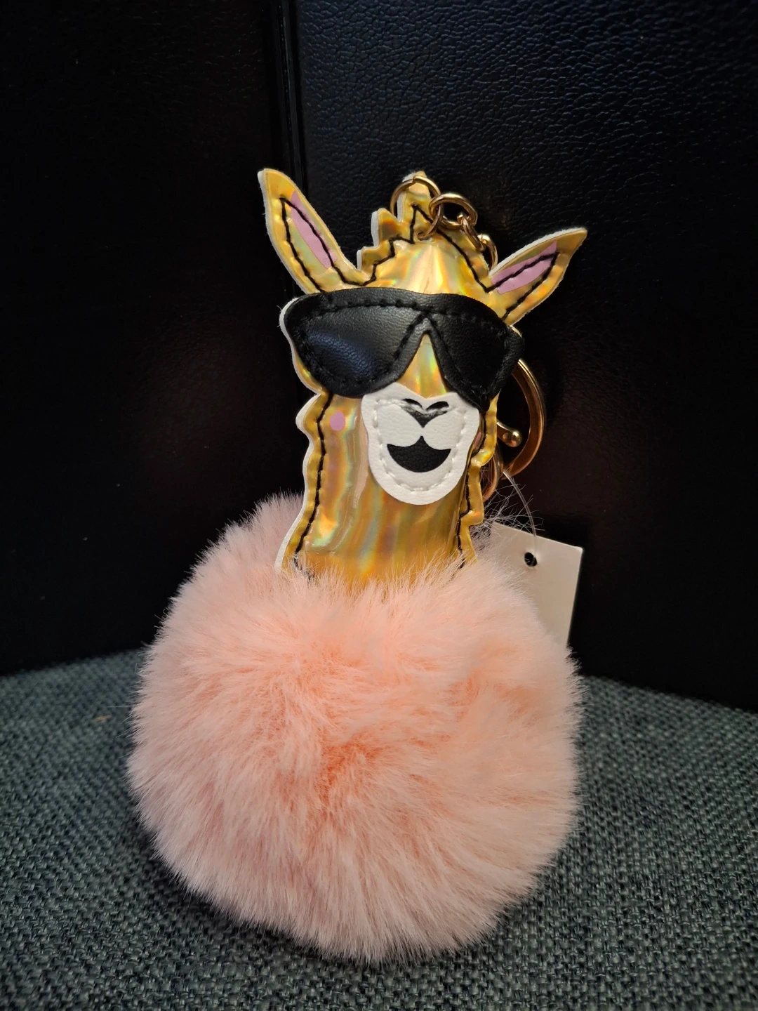 Super cute llama keychain with sunglasses and a fluffy pink pompom! It's in great condition and ready to add some fun to your keys or bag