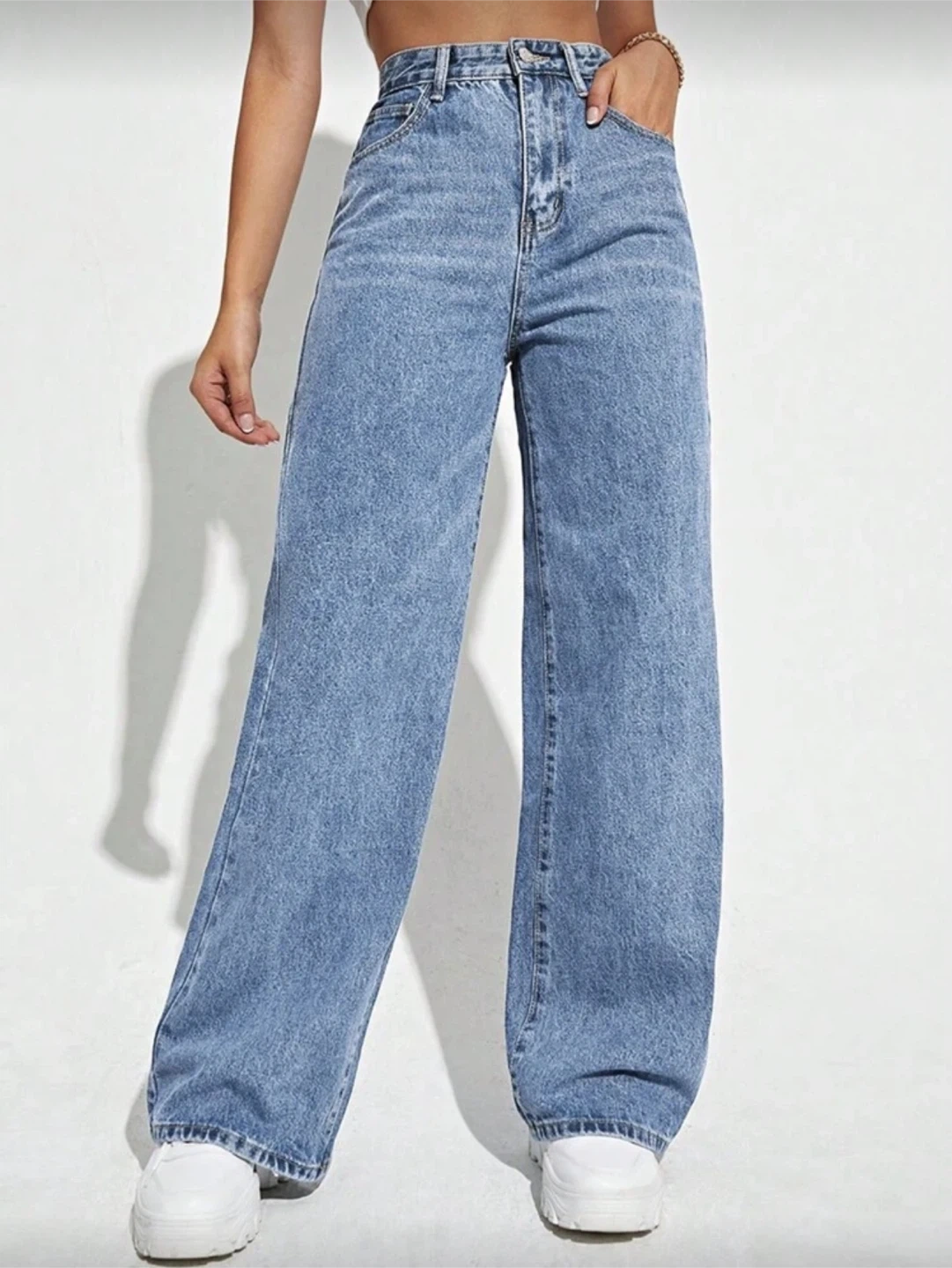 Light wash denim wide leg jeans. They're New! Perfect for a relaxed and stylish look.