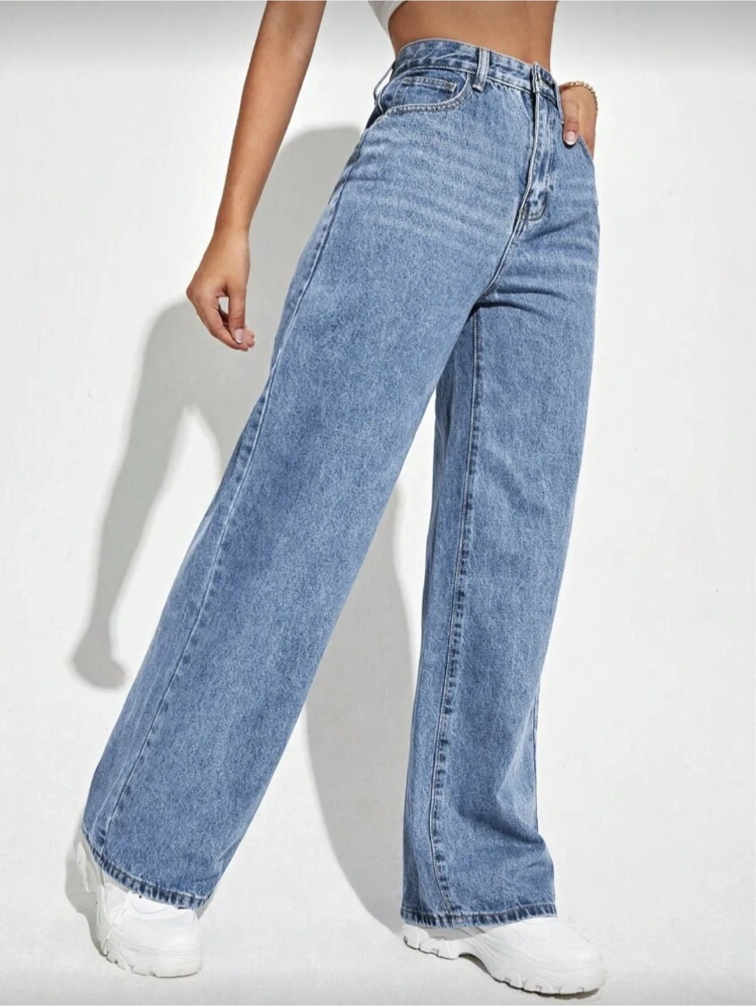 Light wash denim wide leg jeans. They're New! Perfect for a relaxed and stylish look.