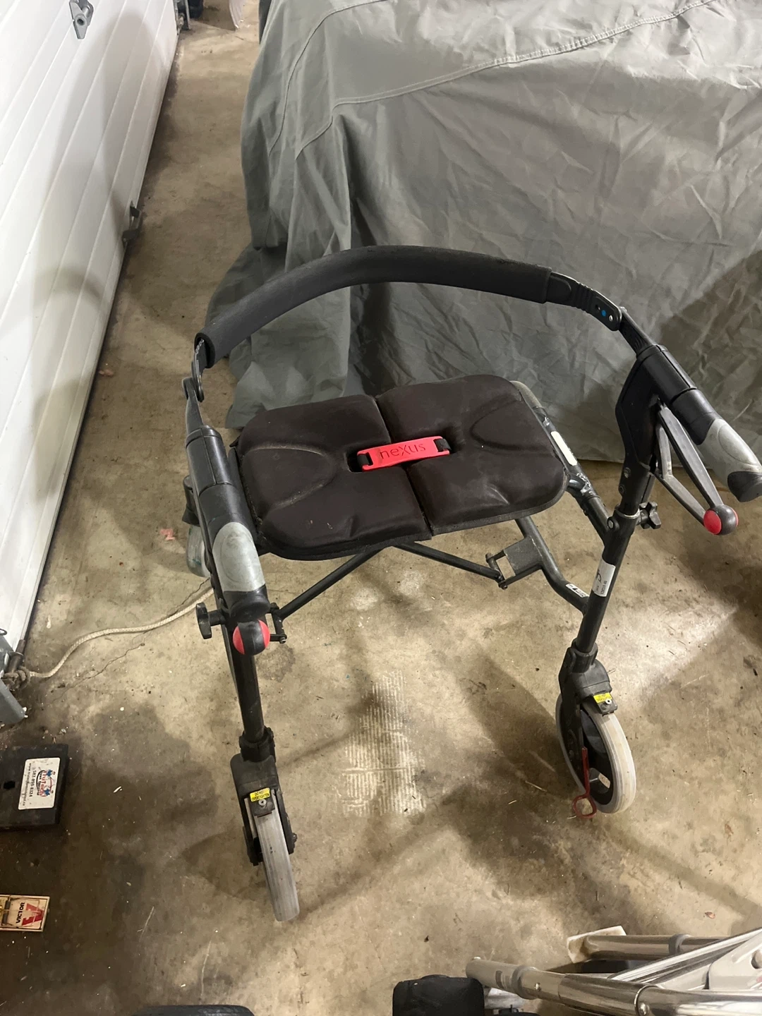 Selling a Nexus rollator walker with a seat. It's in good condition and ready to help someone get around comfortably. The seat provides a convenient place to rest when needed.