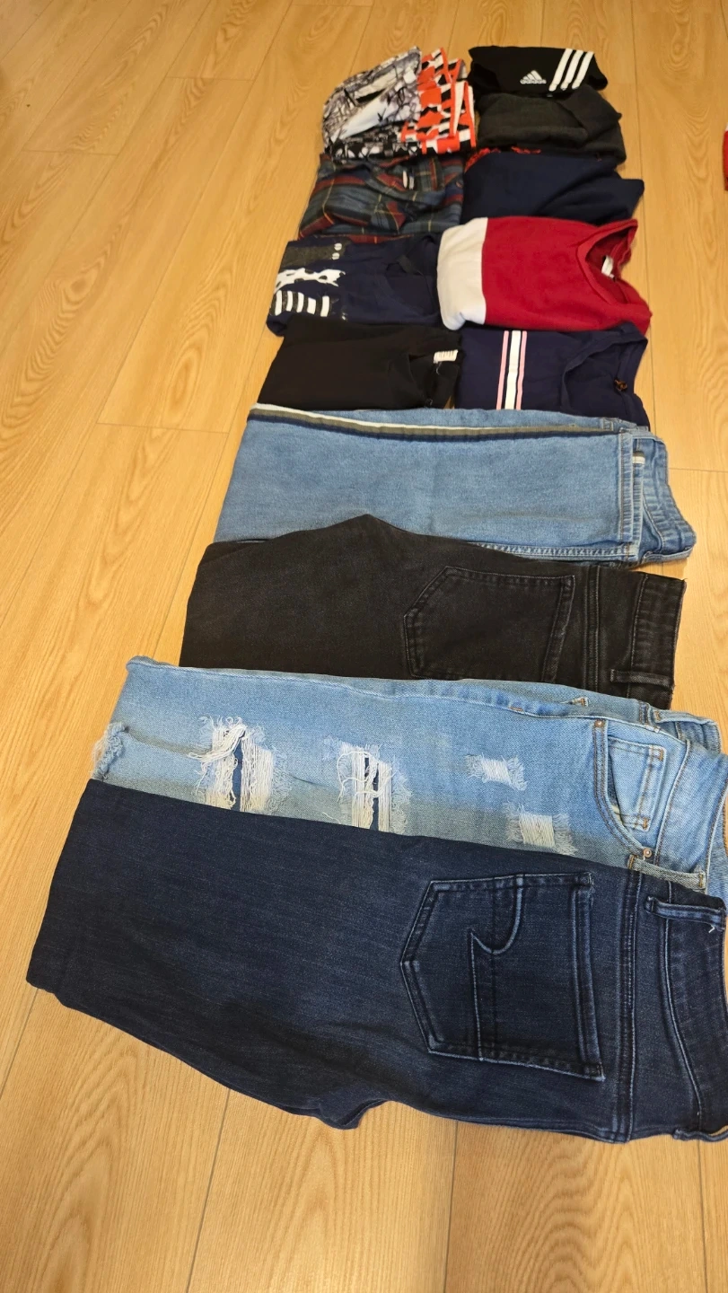 Selling a mixed lot of clothing! There's a variety of jeans, shirts, and other items included. Perfect if you're looking to add some new pieces to your wardrobe. Check out the pictures for a closer look!