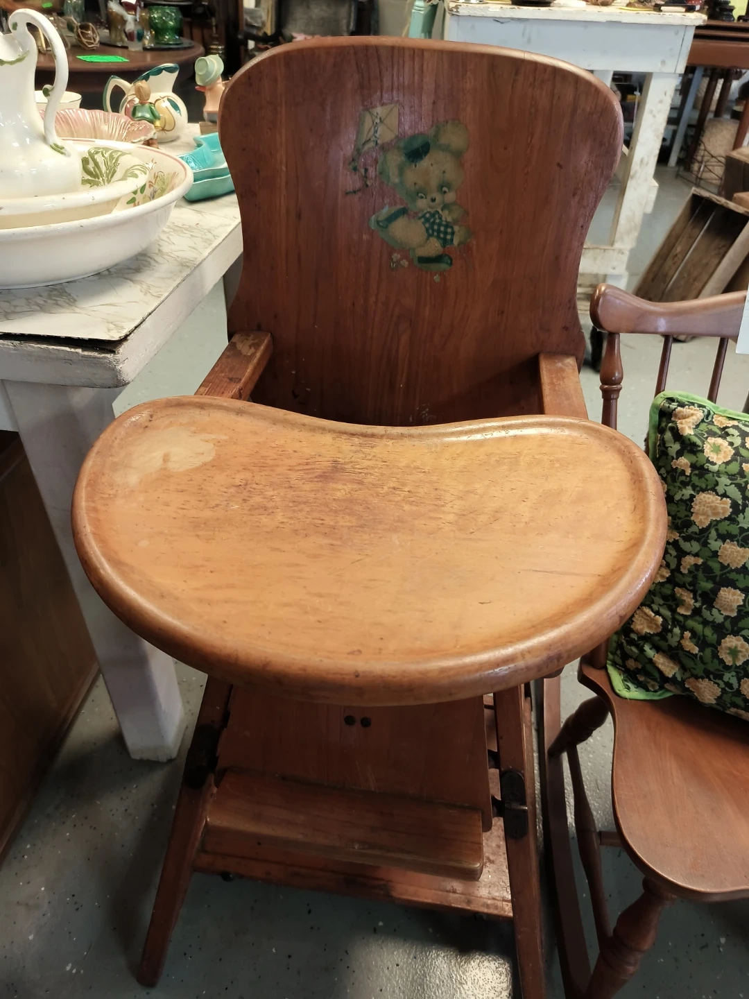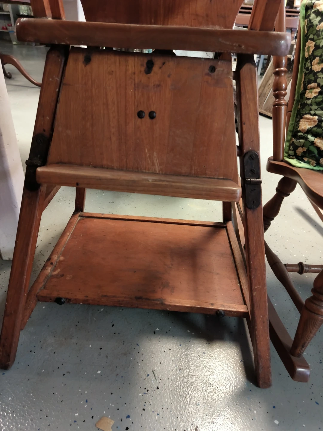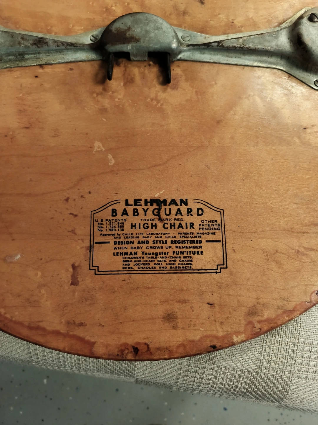 Selling a Lehman Babyguard high chair. It shows signs of wear, but it's still a sturdy and functional piece of furniture. Perfect for a vintage or rustic aesthetic!