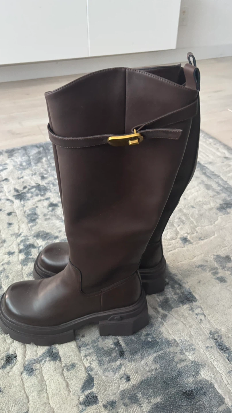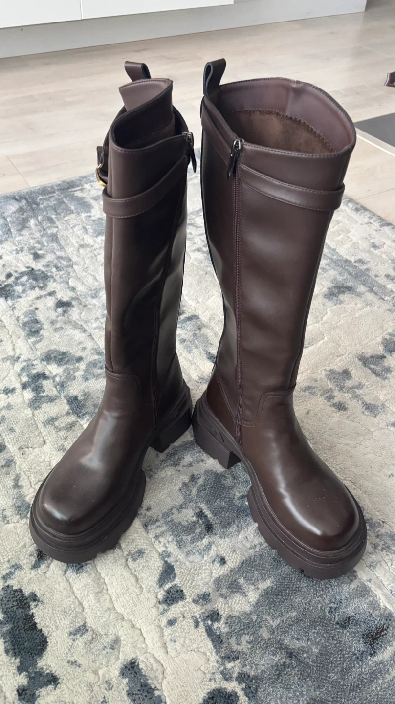 Selling a pair of brown knee-high boots in great condition. They are a size 8 and have a stylish, modern look. Perfect for adding a bit of flair to your outfits!