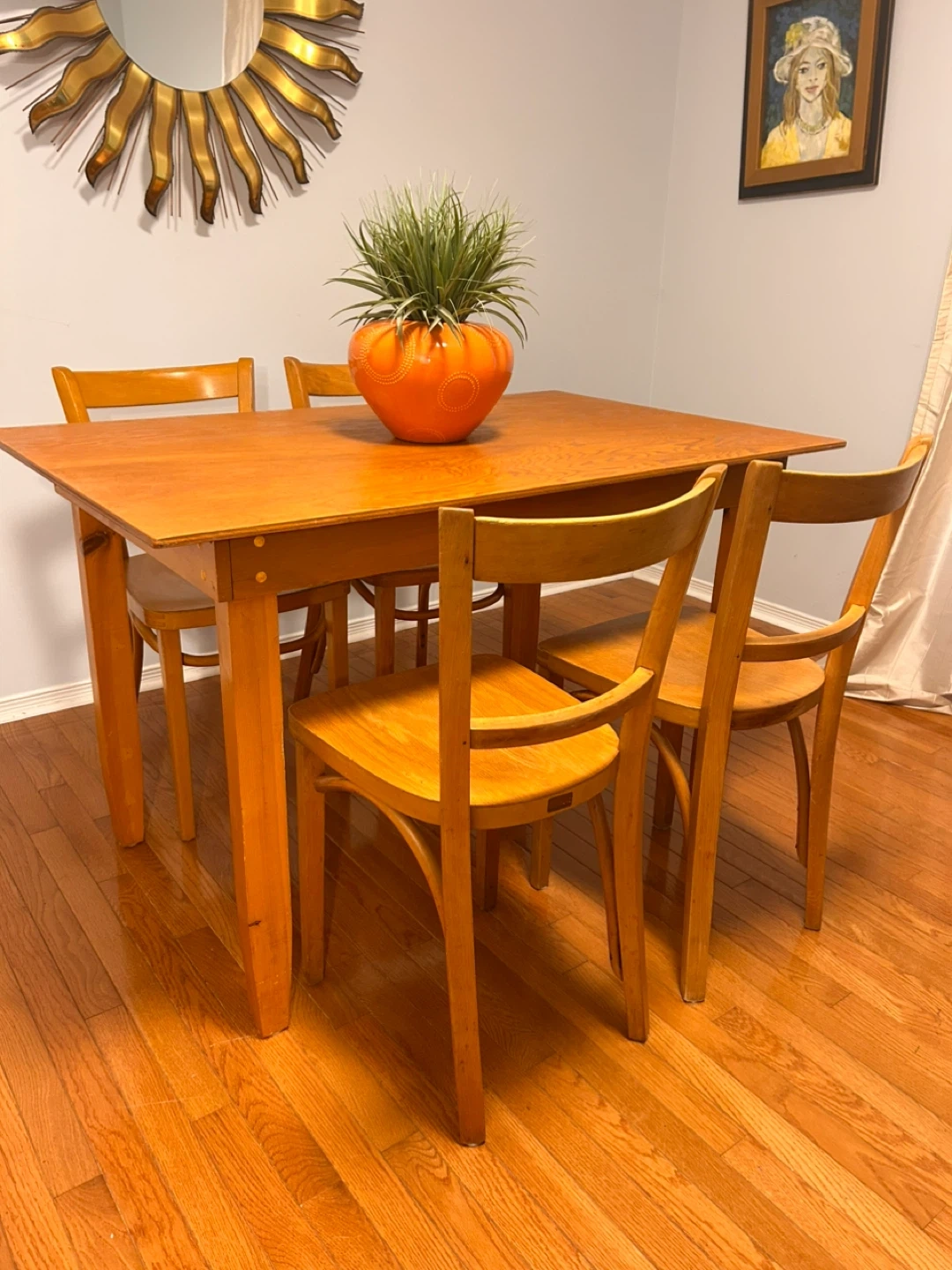 Vintage Dining Table and 4 Chairs - Solid wood made in Poland