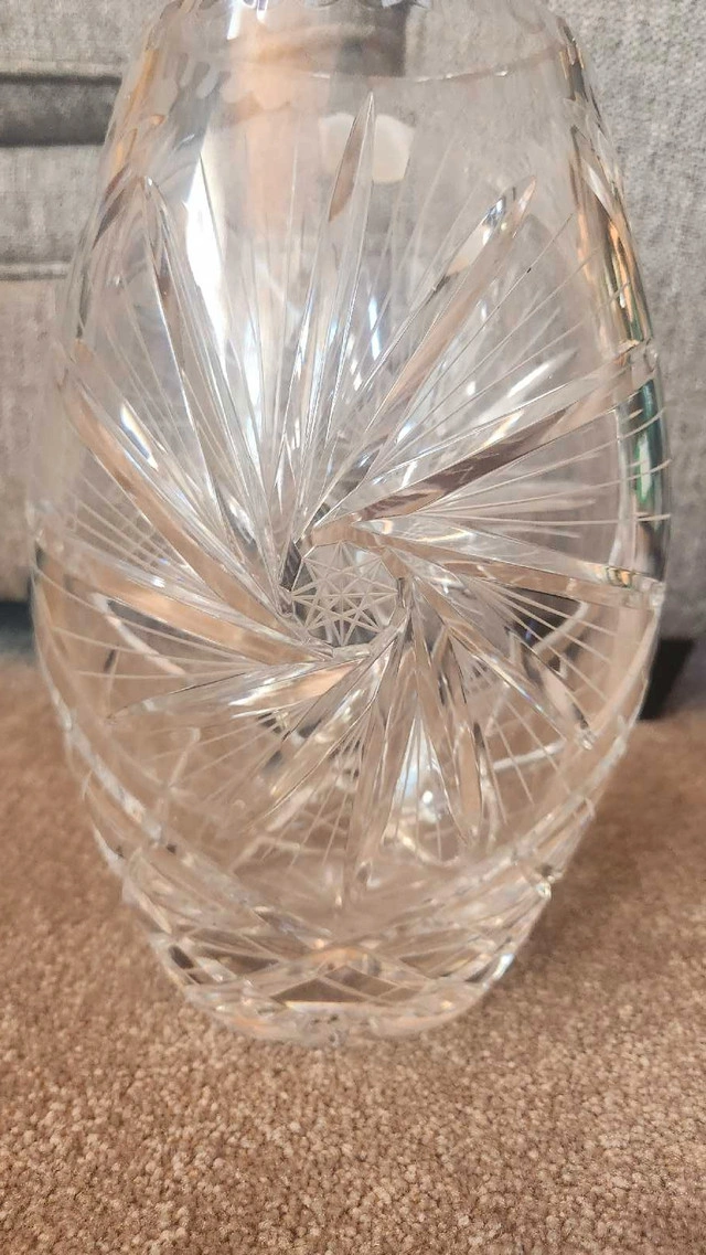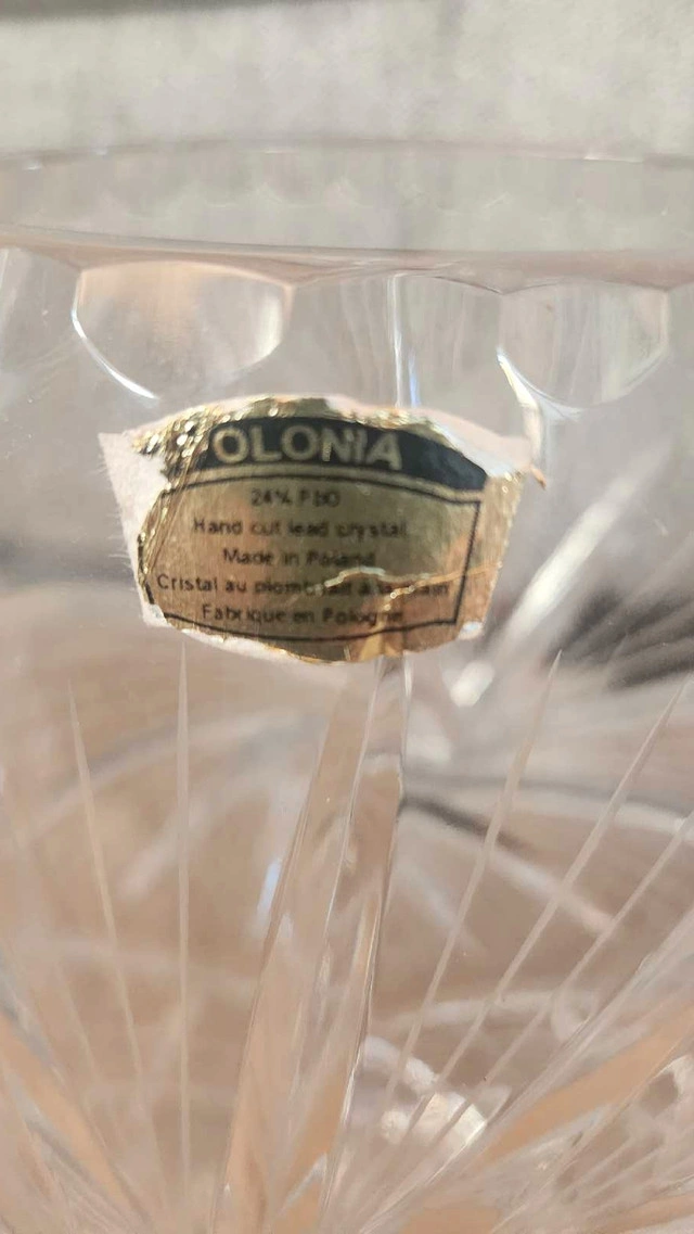 Enhance your home decor with this exquisite Valonia 24% Pbo hand-cut lead crystal vase, crafted in Poland. This beautiful piece features intricate detailing and a classic design, perfect for displaying your favourite floral arrangements. It is in good condition, ready to add a touch of elegance to any room.