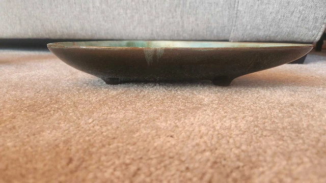 0This vintage triangle dish is a unique piece, featuring green hues and measuring approximately 8 inches in length and 6 inches in width, perfect as a decorative item. Please note this item is used and shows signs of wear including a noticeable chip, which is reflected in the asking price. Unfortunately, I don't have the detailed specifications, but it is a stunning piece. I've priced it accordingly, keeping its condition in mind. If you're reading this, yes, it's still available! Don't miss out on the chance to add this to your collection. It's so unique, it practically screams 'Buy me!'
