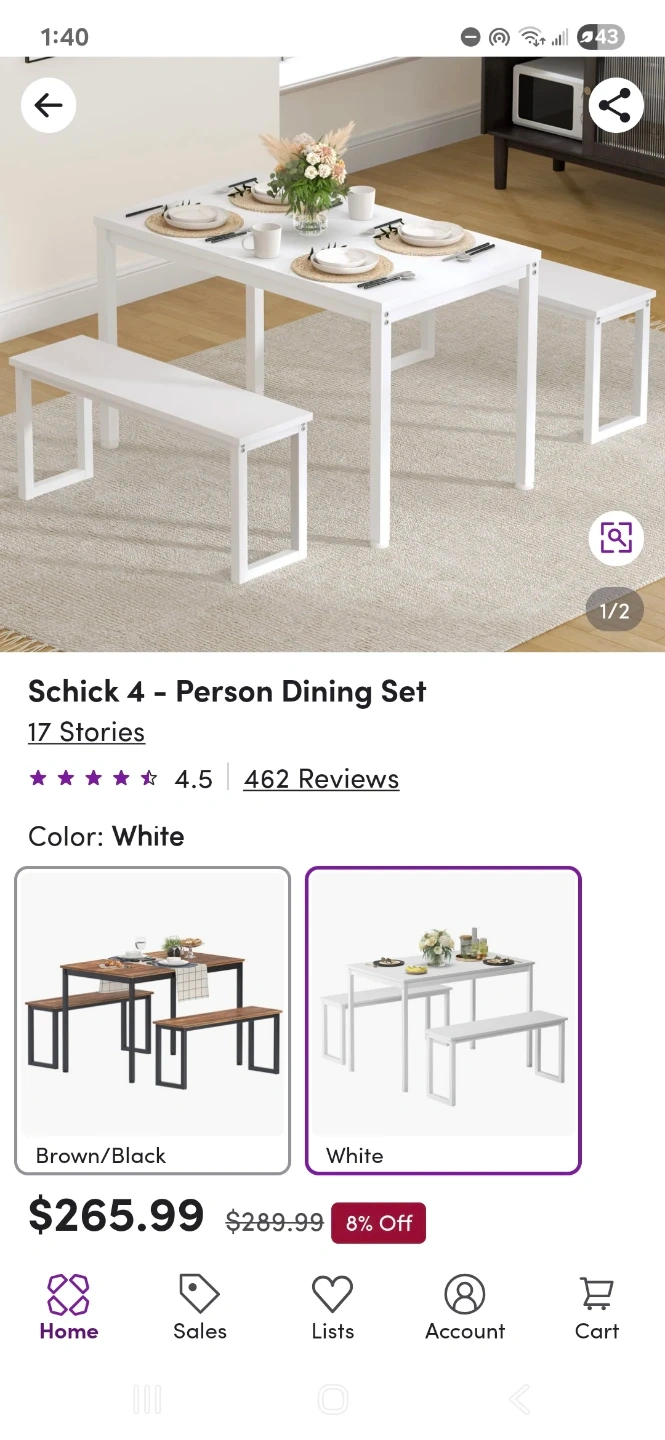 Selling a Schick 4-person dining set in white. It's a great set for a smaller dining space or kitchen. The set includes the table and two benches. Originally bought for $265.99