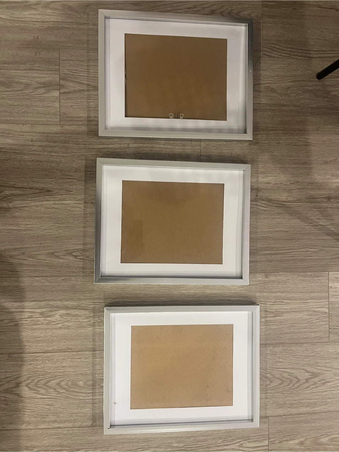 Selling a set of three picture frames. They're in great shape and ready to display your favourite photos or art