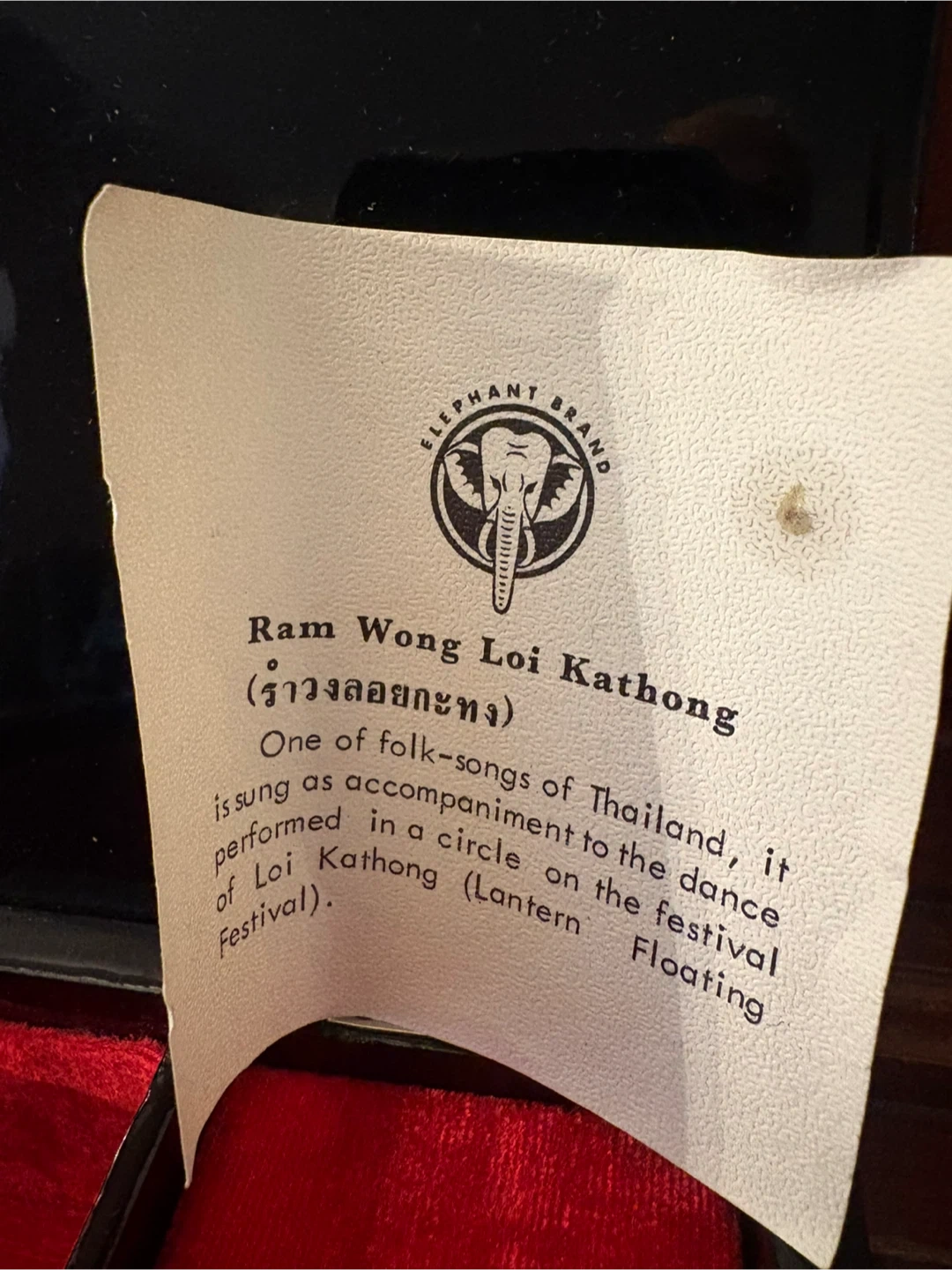π₯ Selling a beautiful Elephant Brand music box! It plays Ram Wong Loi Kathong, a folk song from Thailand. The box is lacquer ware with a lovely design on top.