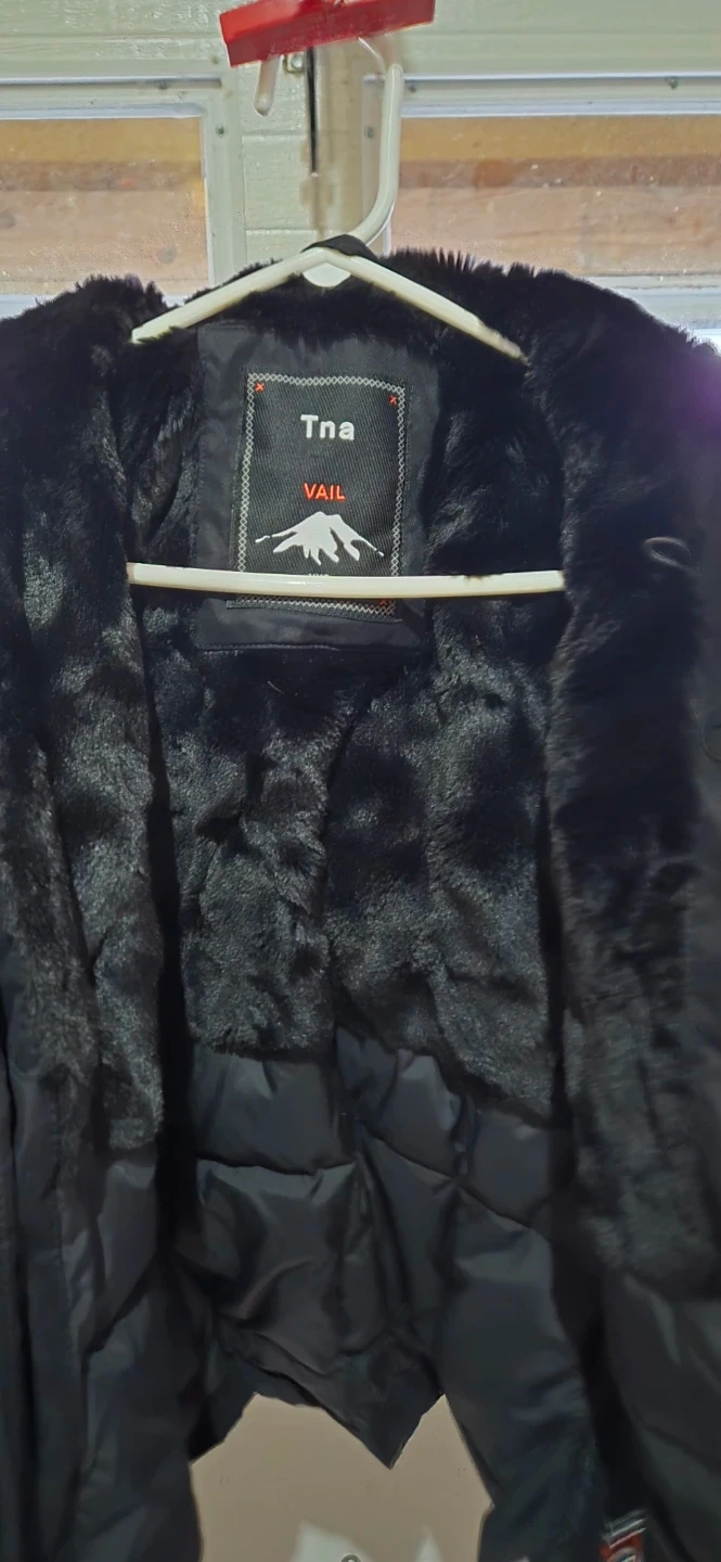 Selling a TNA Vail winter parka in black! It's a size XXS and features a faux fur-lined hood. Perfect for staying warm during the cold Canadian winter.