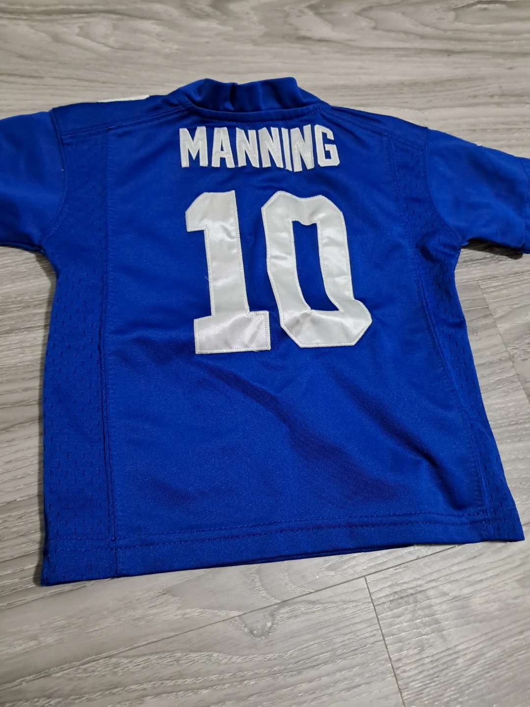 10Selling a cute NFL New York Giants jersey with Manning's name and number 10! It's in great shape and perfect for a young fan. The size is 5T