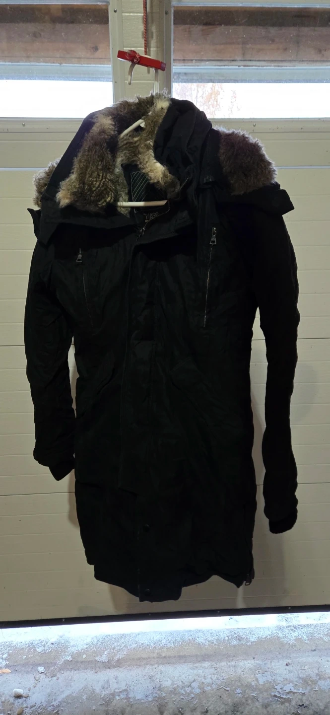 Selling a TNA black winter parka in size small. It has a faux fur trim on the hood and is in good condition. Perfect for keeping warm during the cold Canadian winter!