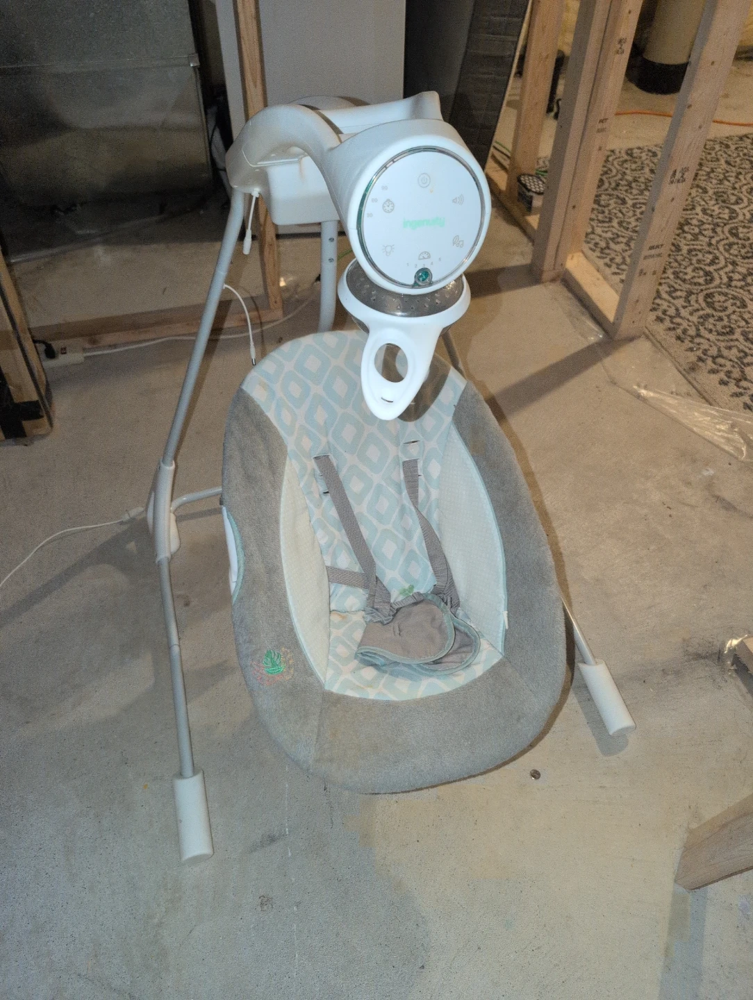 Gently used Ingenuity ConvertMe Swing-2-Seat. It's in great condition and ready for a new little one! The swing easily converts to a seat with soothing vibrations. Perfect for keeping your baby happy and comfortable.
