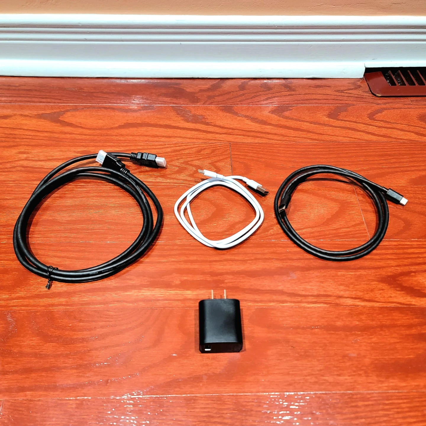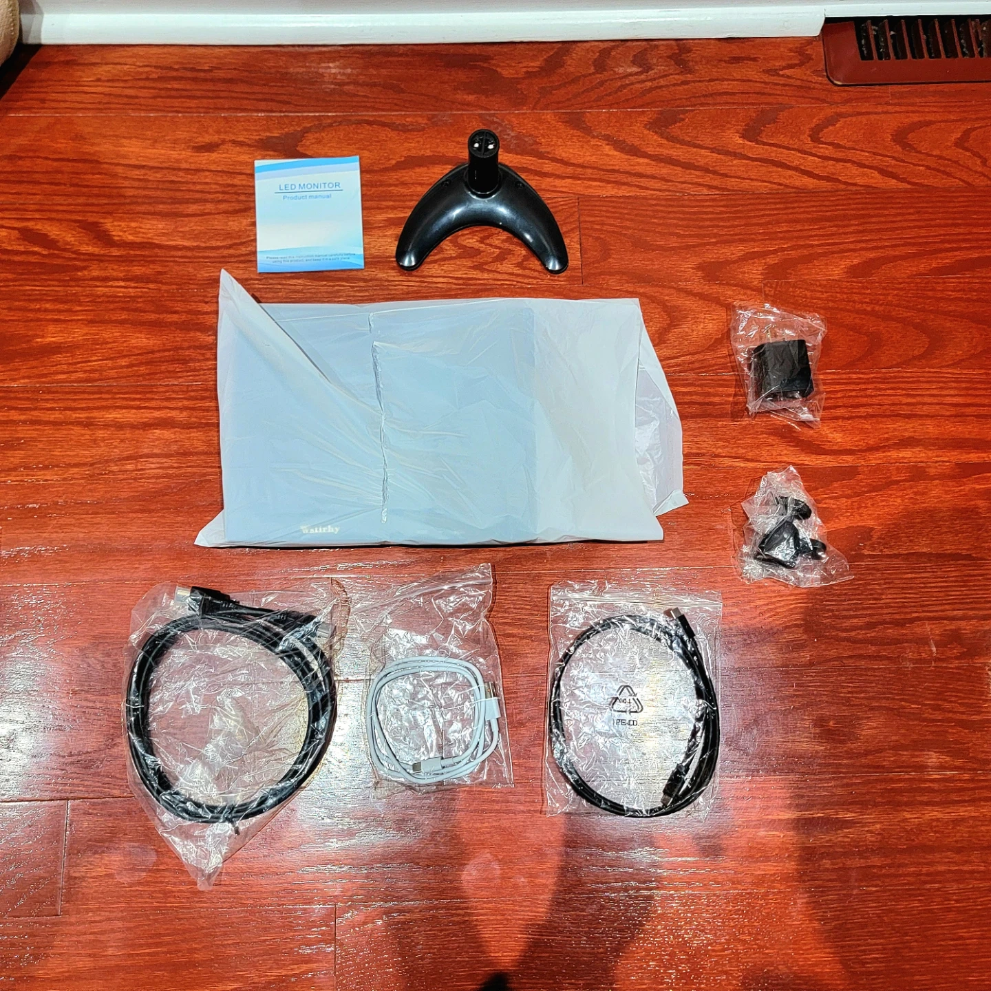 1 Wstirhy Monitor, 1 HDMI Cable, 1 Power Cable, 1 Charging Cable, 1 Charging Adapter, 1 Stand, 1 Ball Head Mount, and 1 User Manual.