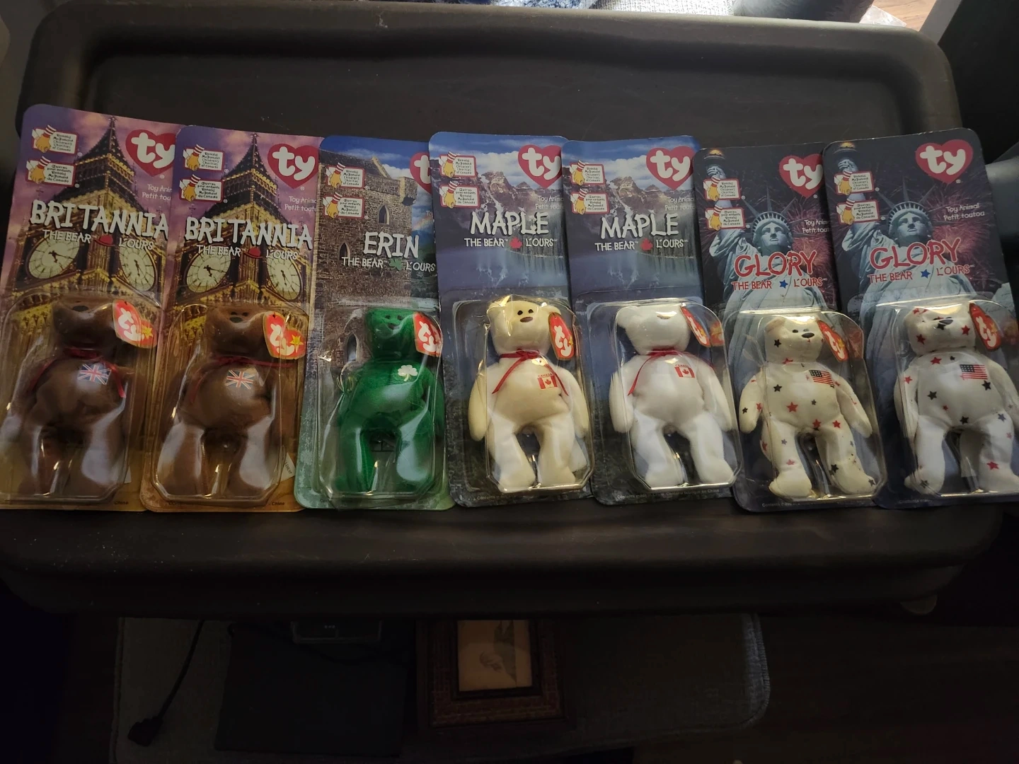 Selling a collection of Ty Beanie Babies! Included are Britannia, Erin, Maple, and Glory. All are still in their original packaging. Great for collectors!