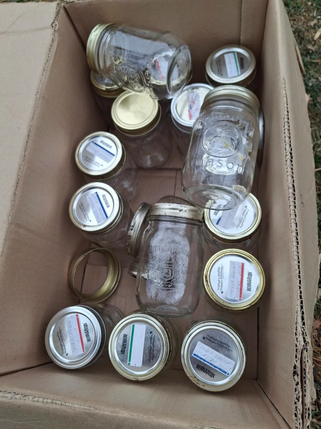 Selling a few dozen Bernardin mason jars! There are many pints, quarts & misc jars, all ready for all your canning needs! 50 cents per jar or take all for 35 cents per jar. Kombucha size jars $5