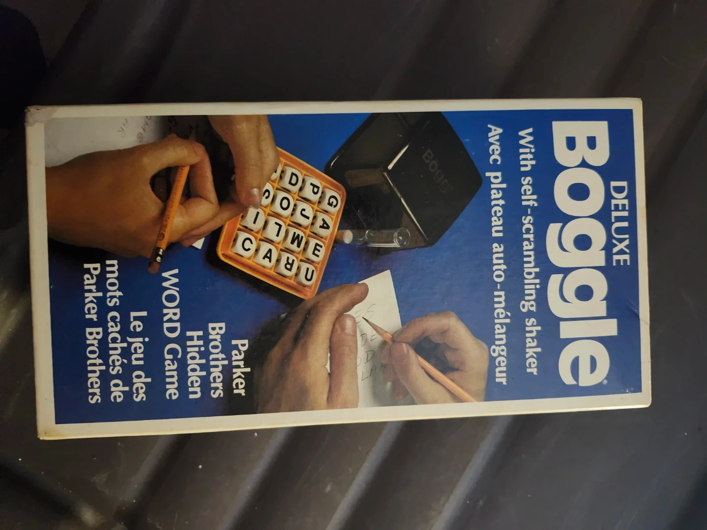 Selling a Deluxe Boggle game by Parker Brothers! It comes with a self-scrambling shaker and is great for word game enthusiasts