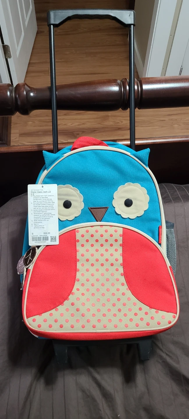 10This adorable Skip Hop kids luggage features a cute owl design and is perfect for little travellers! It's a rolling suitcase, making it easy for kids to pull along. The luggage has a retractable handle and smooth-rolling wheels. Great for weekend trips or sleepovers! .$20