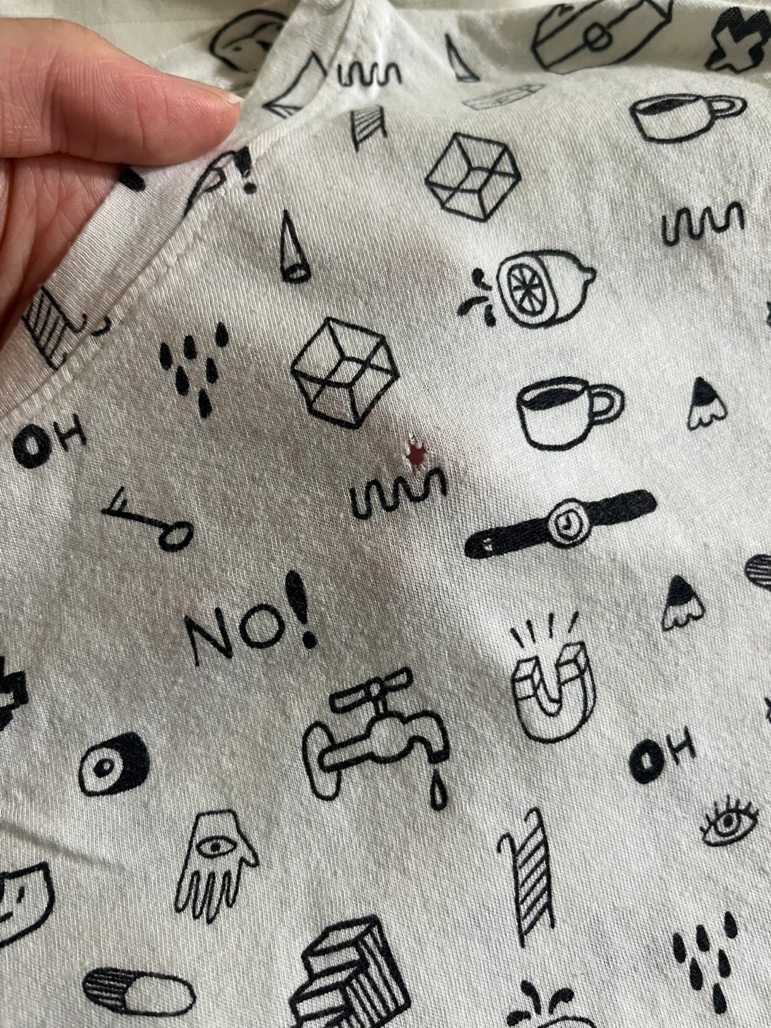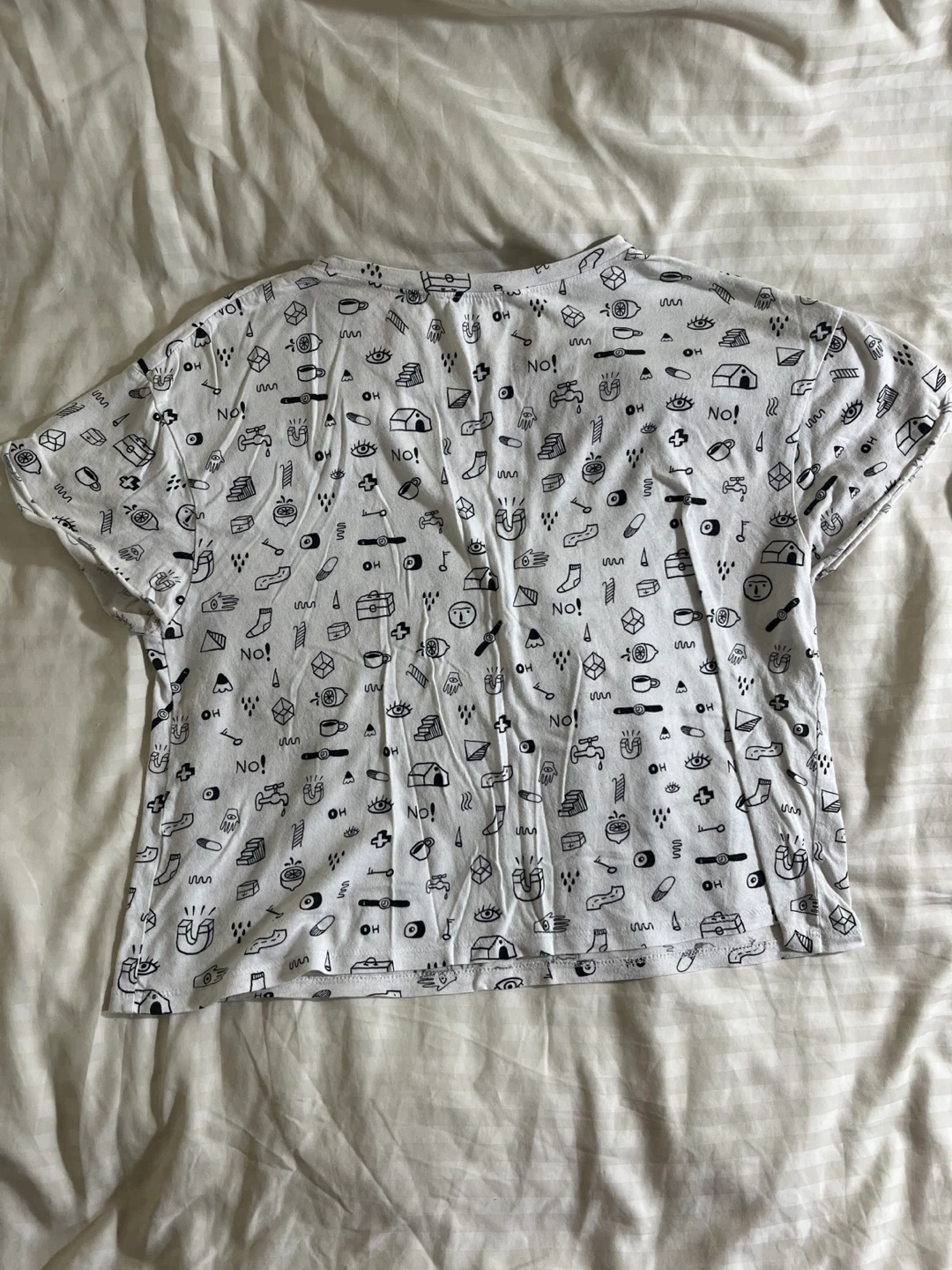 Cute Zara Trafaluc T-shirt with a unique all-over pattern! It's a size small and in good/okay condition. Perfect for casual wear! It’s thin and breezy which is also nice for summer or lounge wear.