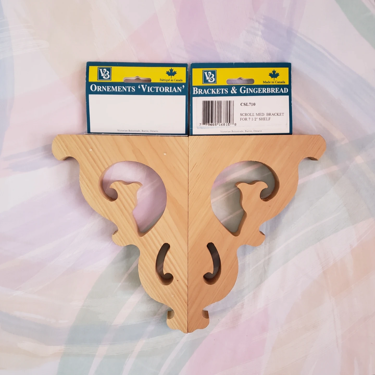 Selling a pair of scroll-medium brackets for a 7.5 inch shelf