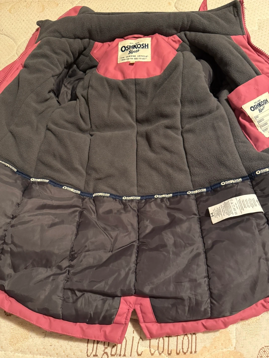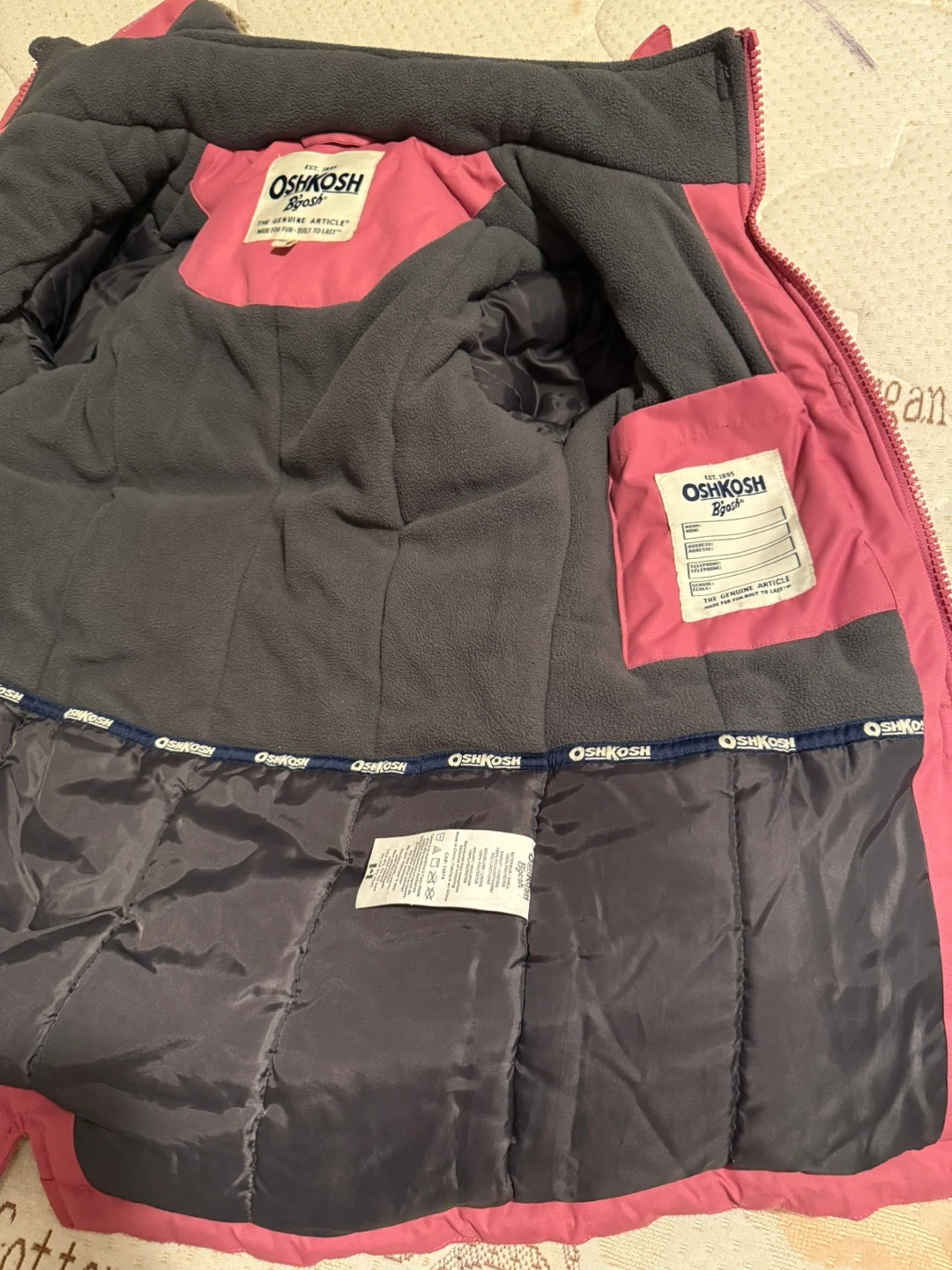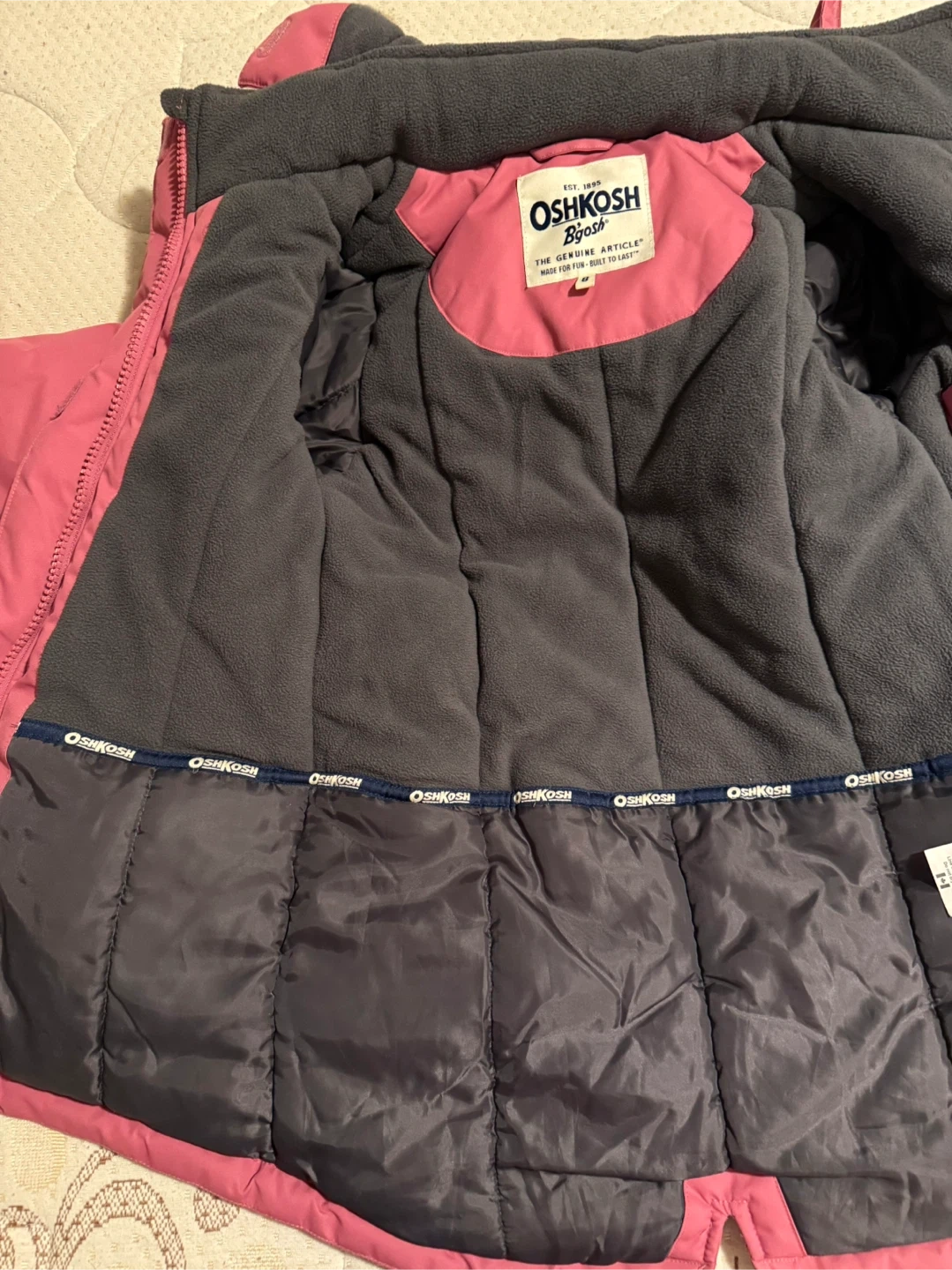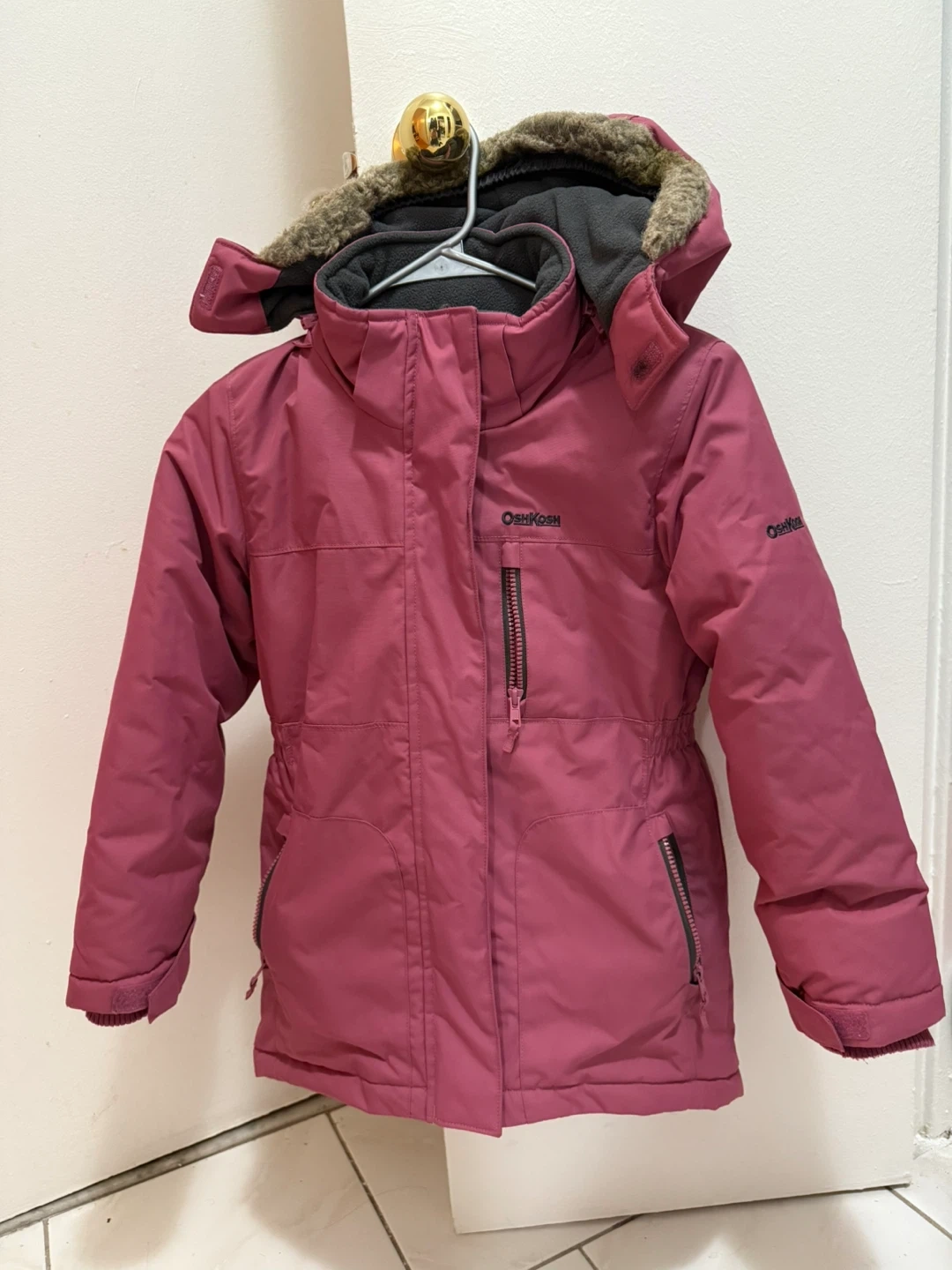 Selling a cute OshKosh Bgosh winter coat in size 8! It's in great condition and perfect for keeping your little one warm during the colder months. The coat features a cozy faux fur trim around the hood and a comfortable lining. It's a lovely shade of pink and used only for last winter. So it’s like new without any damage.