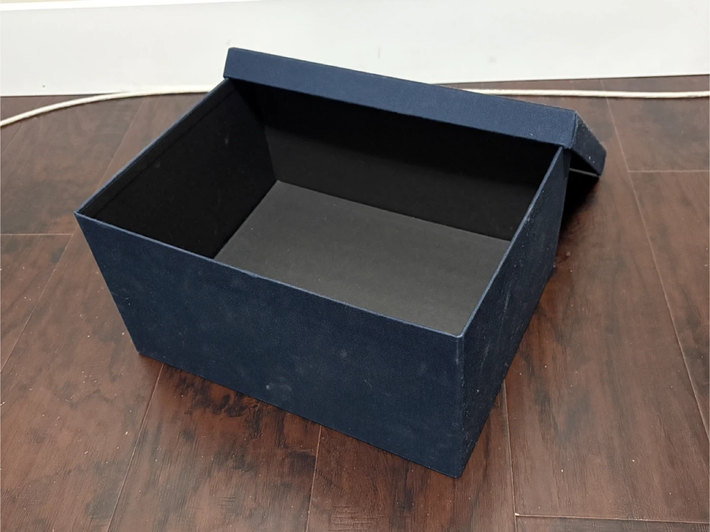 Selling a nice IKEA STRIKT box! It's a dark blue colour and measures approximately 13 inches by 10 inches. The box is in great shape and includes the lid.