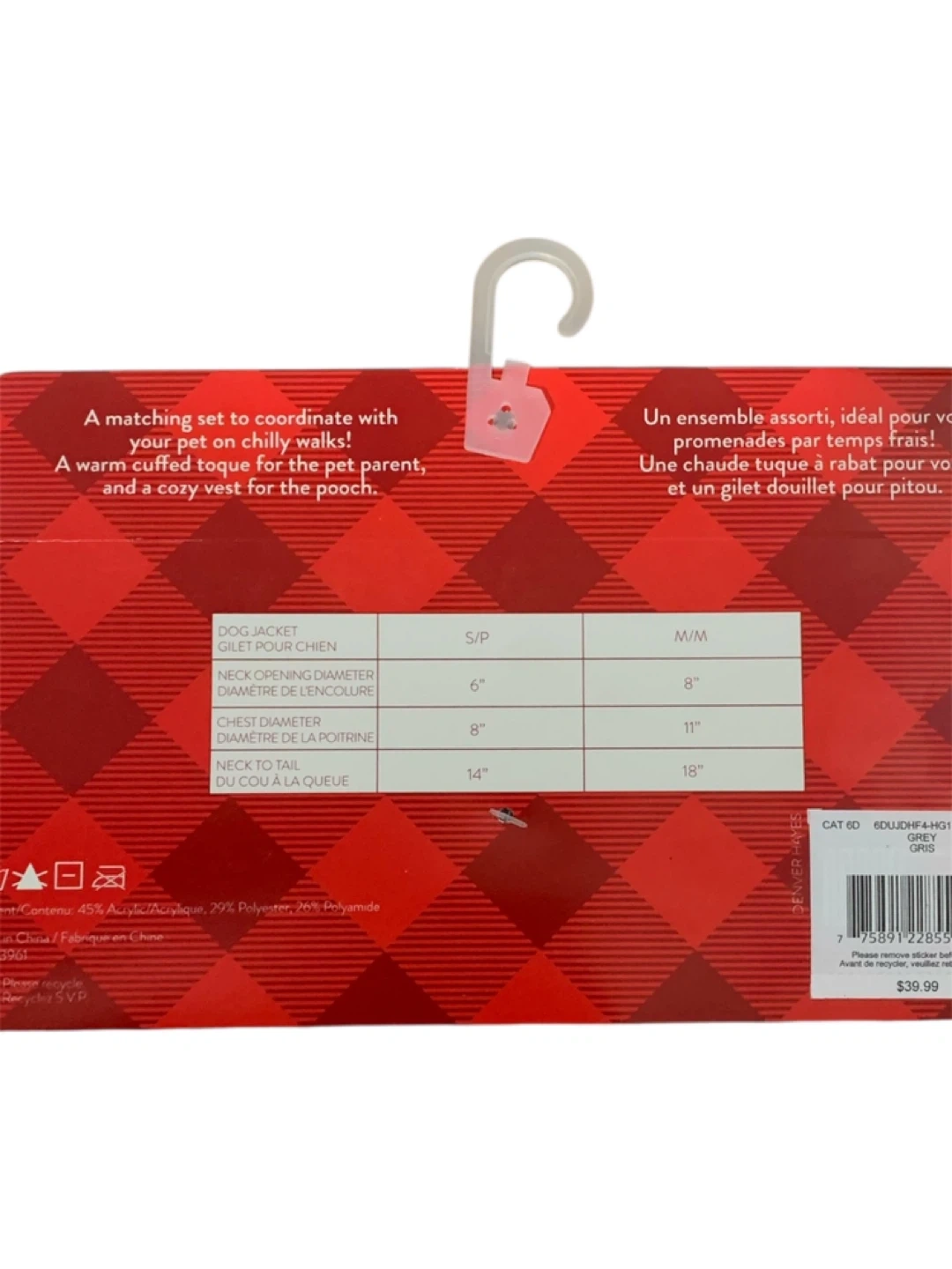 πΎ Pup & Me Set: Cuffed Toque and Dog Vest β Grey Pattern