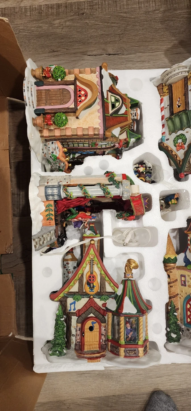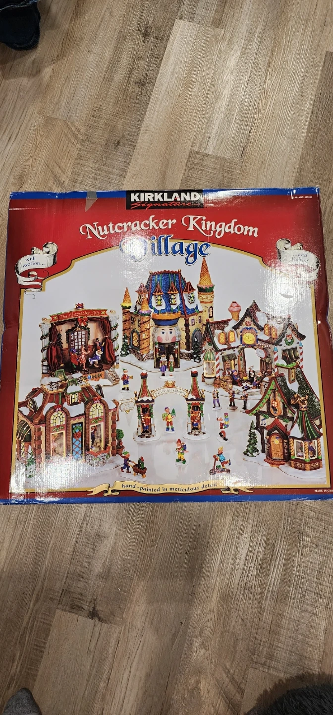 Selling a Kirkland Nutcracker Kingdom Village set! This festive set includes various buildings and figurines to create a charming holiday display. Perfect for adding a touch of whimsy to your home during the Christmas season. Comes in the original box! All lights work. The main stage motor works, however the others don't (may just need some matinace as it has sat in the box for several years.